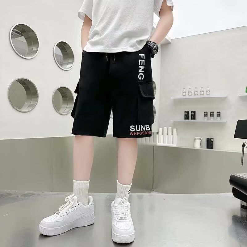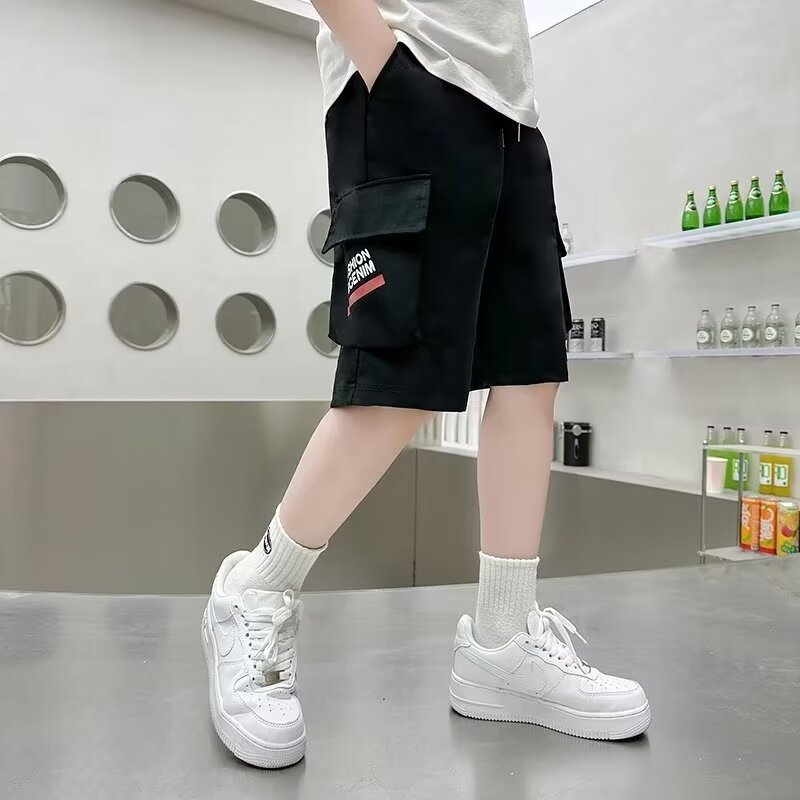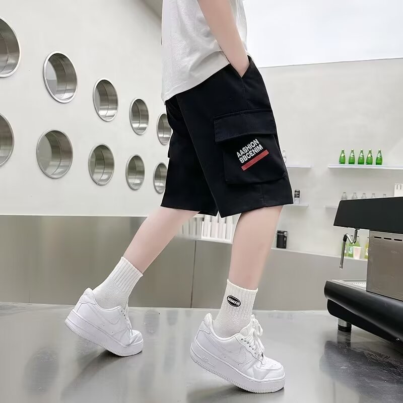 童装日系港风夏季潮牌短裤男童运动ins工装裤中大童直筒五分中裤