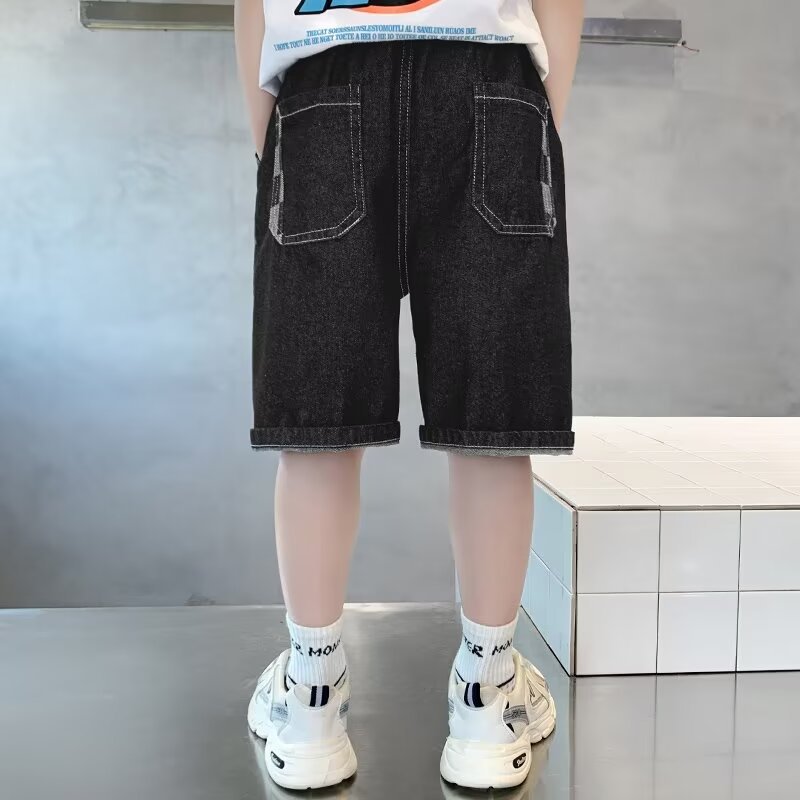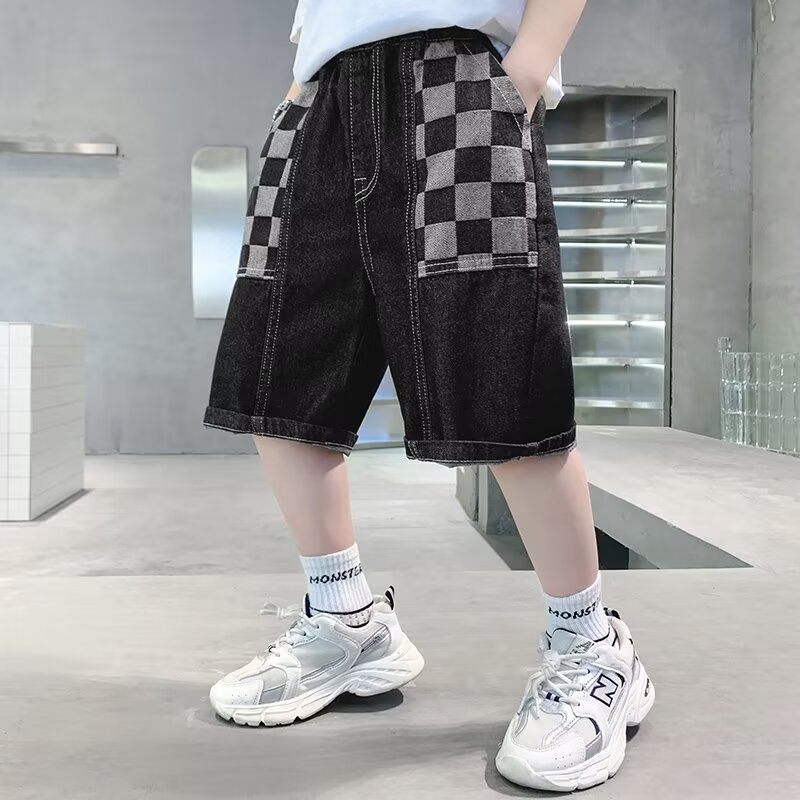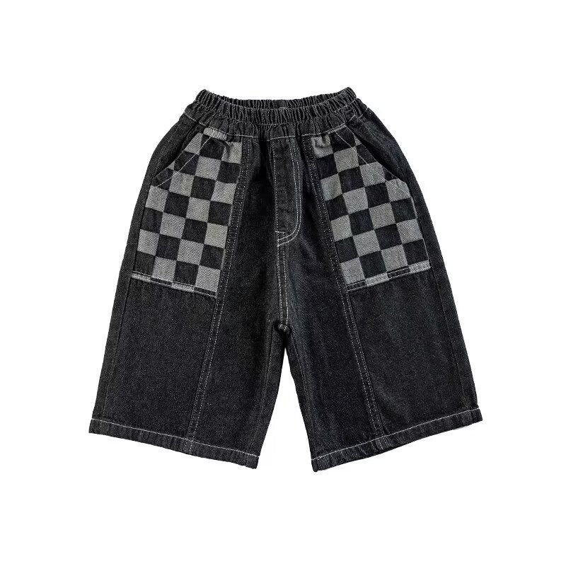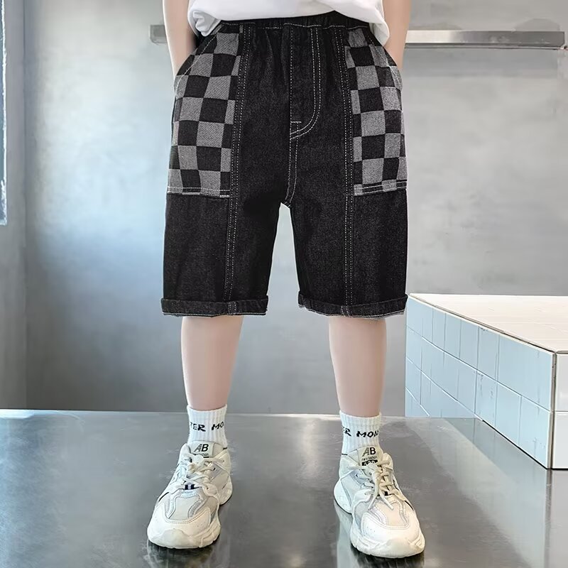 儿童装男童夏装牛仔裤子新款中大童棋盘格休闲短裤男孩五分裤