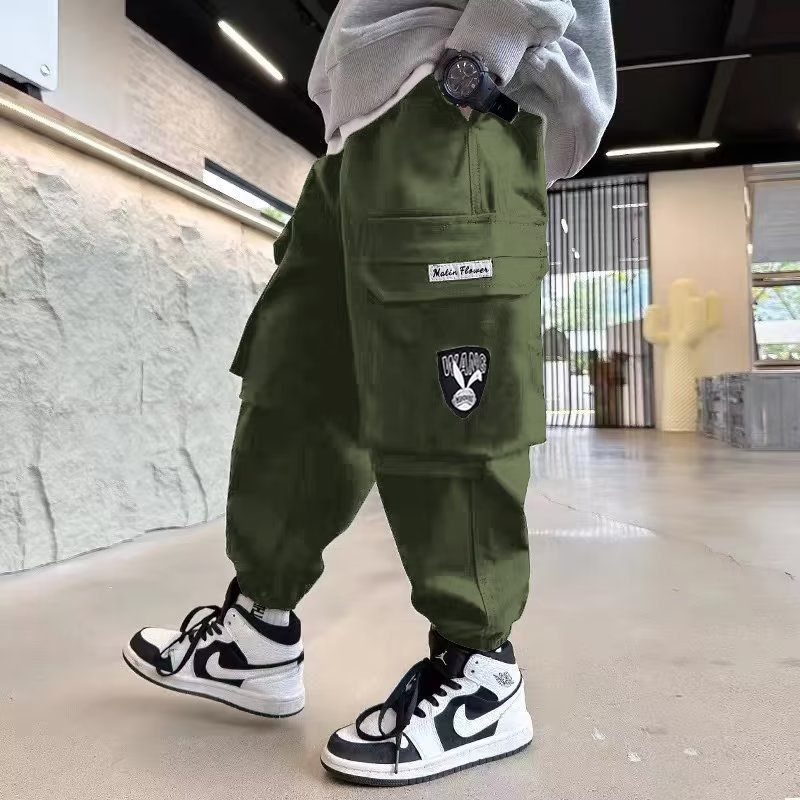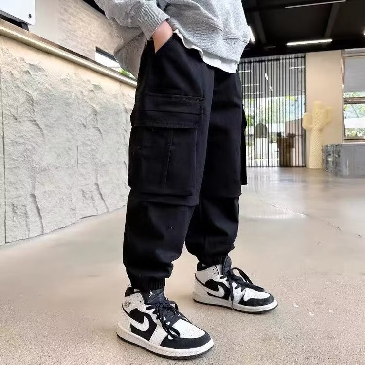 童装纯棉裤新款春季男童韩版潮流宽松长裤束脚港风炸街工装裤