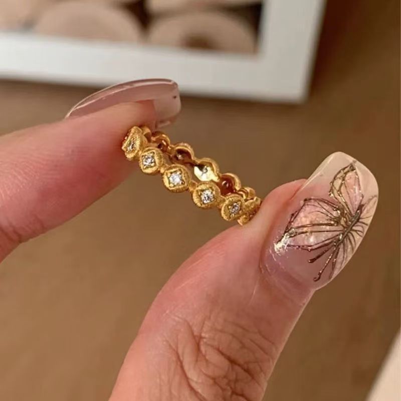 小红书爆款中古点钻圆珠戒2025新款复古轻奢叠戴开口指环