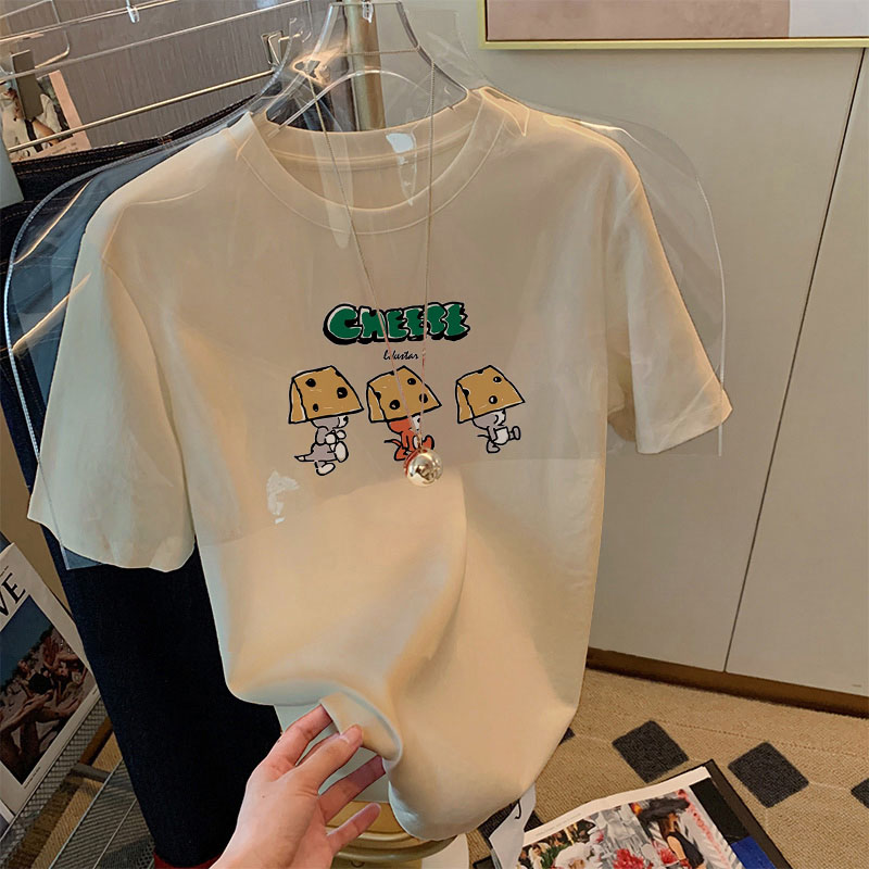 杏色纯棉短袖t恤女装2025年夏季新款韩版宽松纯棉设计感上衣ins潮