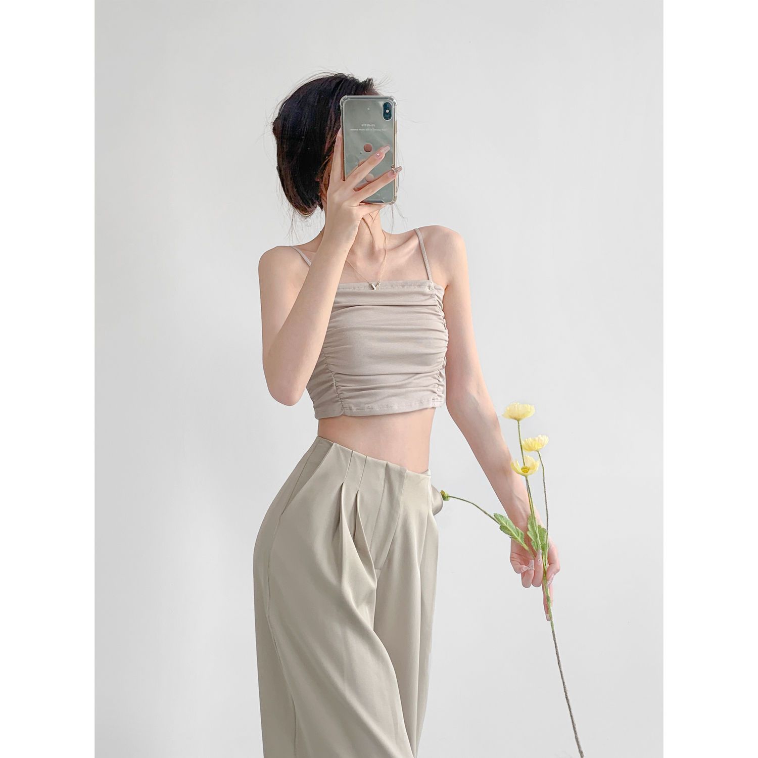 日落甜心纯欲风辣妹褶皱吊带背心女夏季修身显瘦短款内搭抹胸上衣