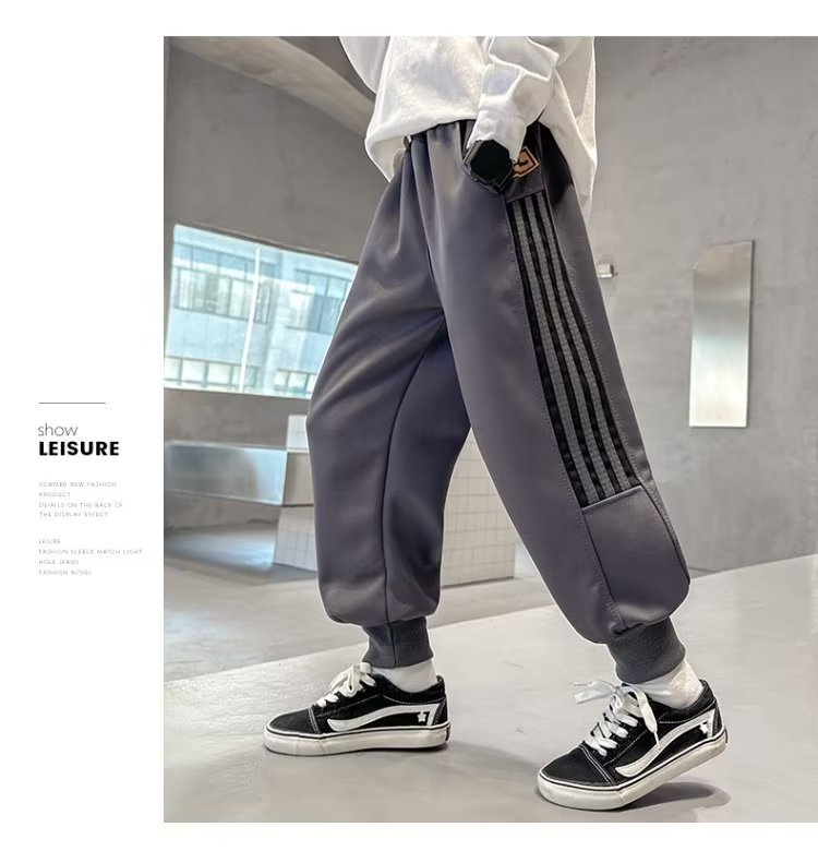 童装春季裤子新款男童休闲条纹运动裤男孩潮流宽松炸街卫裤潮