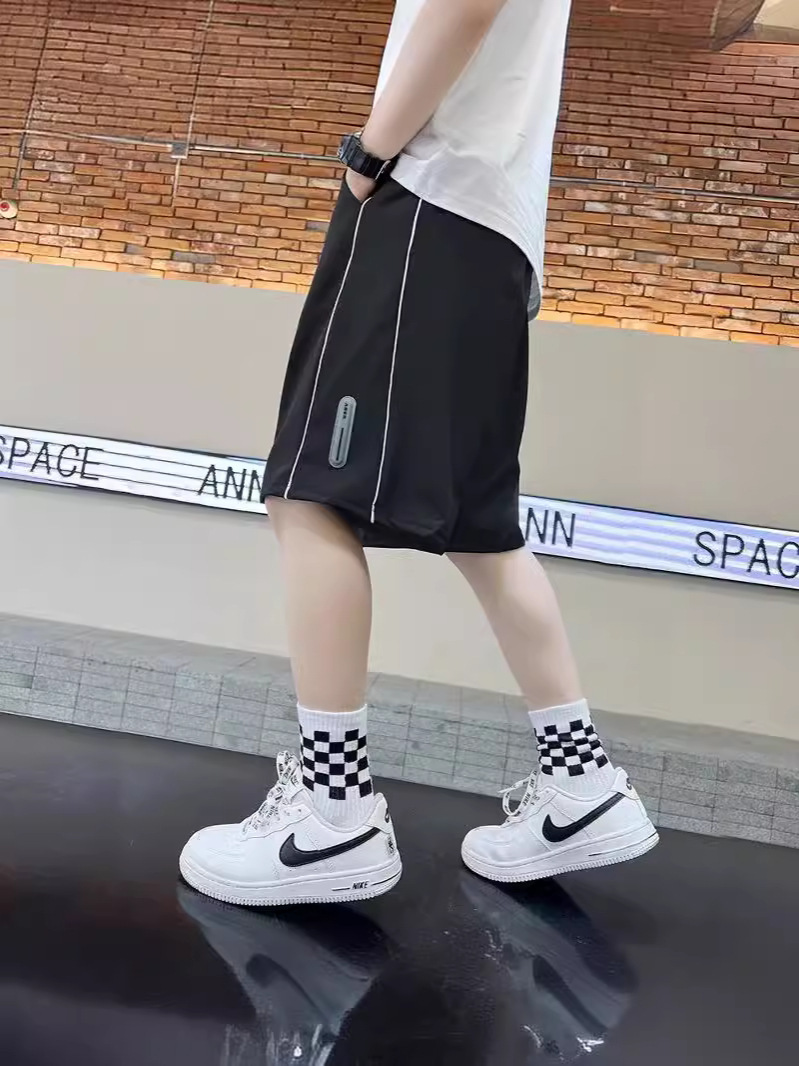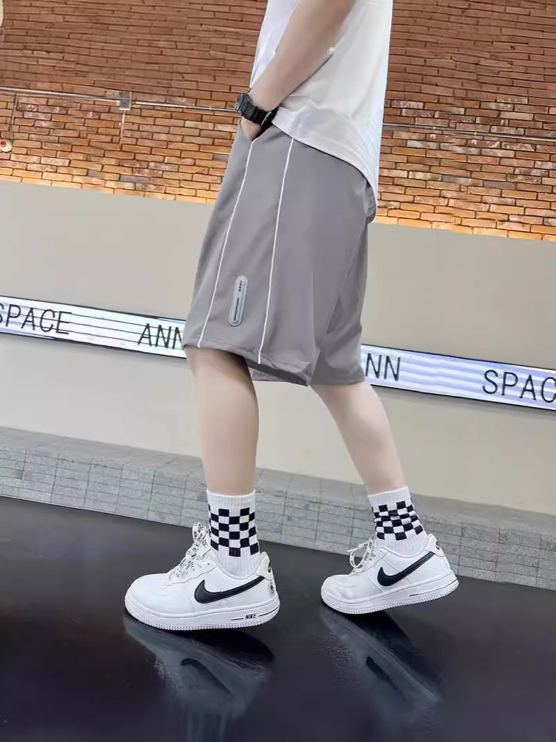 港风冰丝裤子男士夏季新款宽松百搭九分裤侧边条纹运动休闲束脚裤