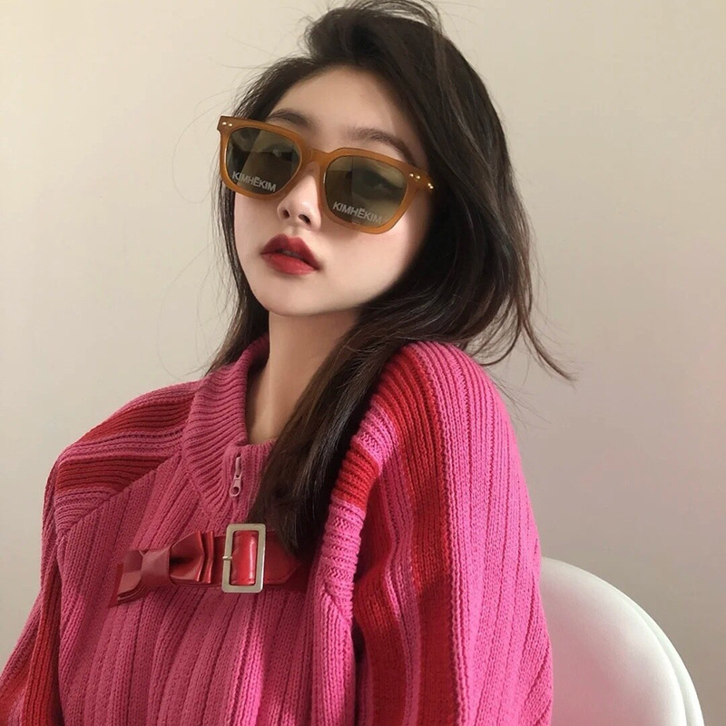 焦糖色kimhekim墨镜女新款潮小红书网红框太阳镜防紫外线眼镜