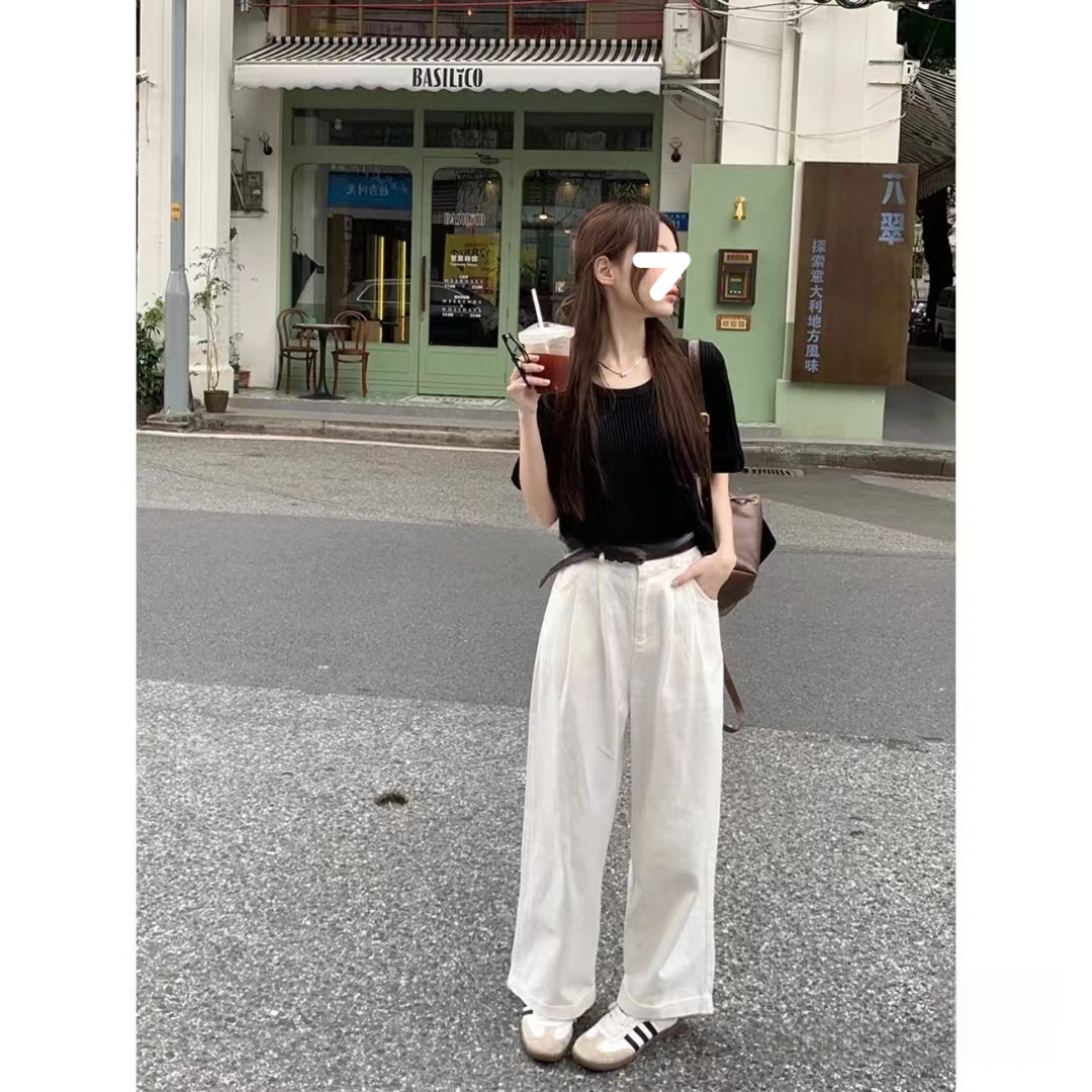 冰丝短袖针织t恤女夏小众领感体恤u夏季上衣小个子针织衫正肩设计