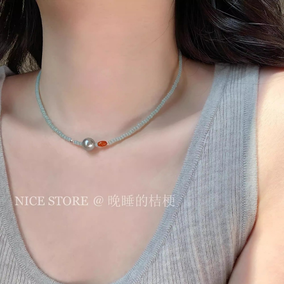 「踏野」春日绿色玛瑙串珠森系项链小清新新中式锁骨链