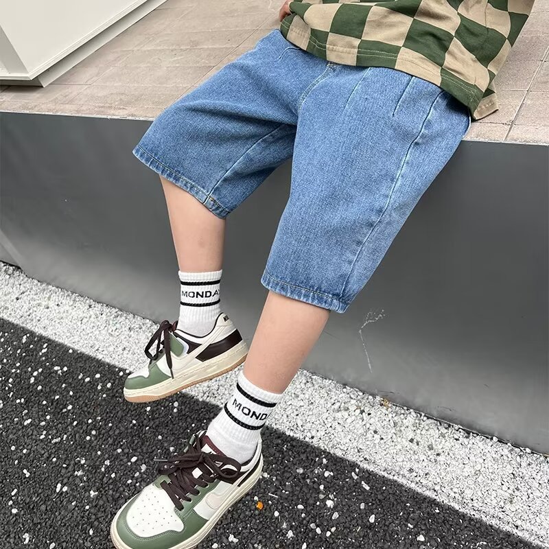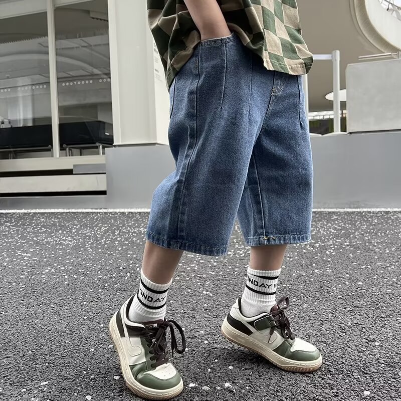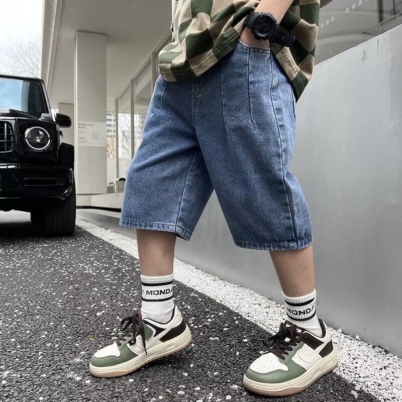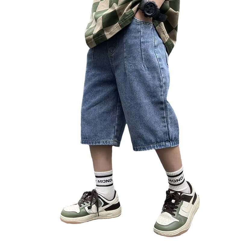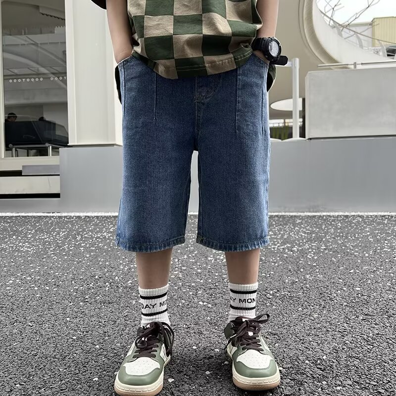 童装流行潮流夏季短裤新款男童日系直筒牛仔裤中大童蓝色中裤