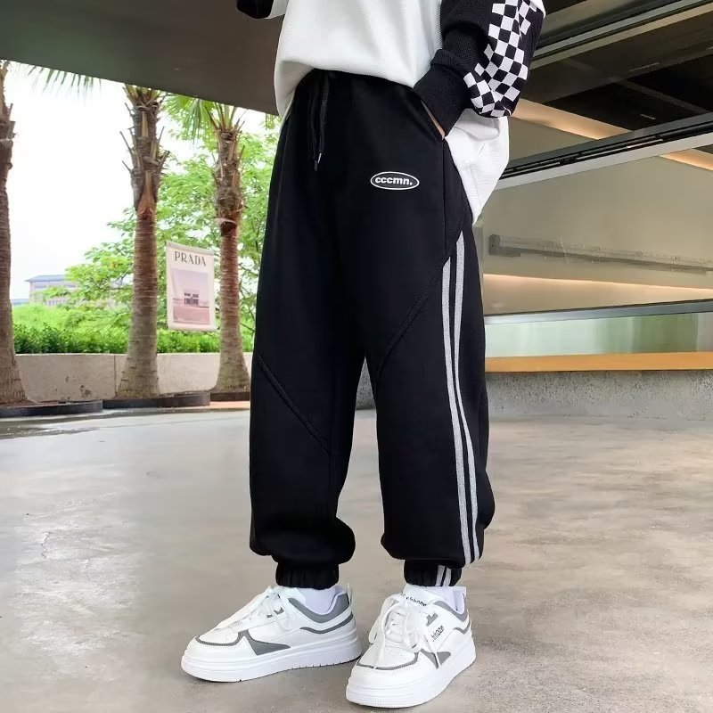 亚马逊童装裤子春秋新款中大童拉条杆卫裤休闲韩版炸街运动裤跨境