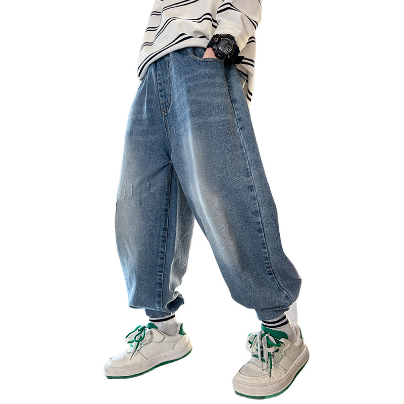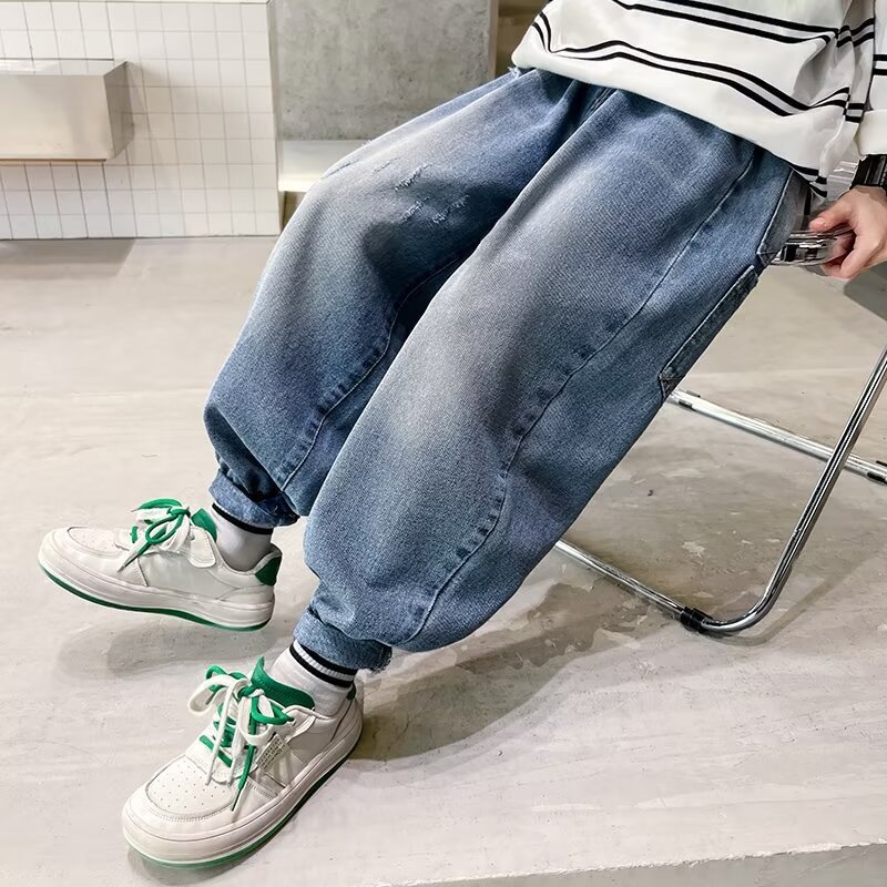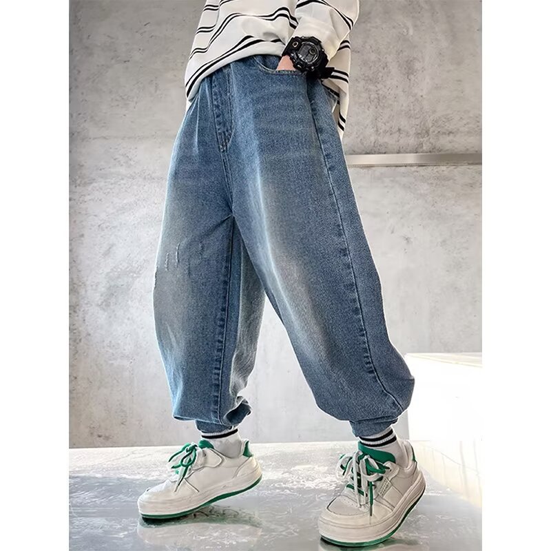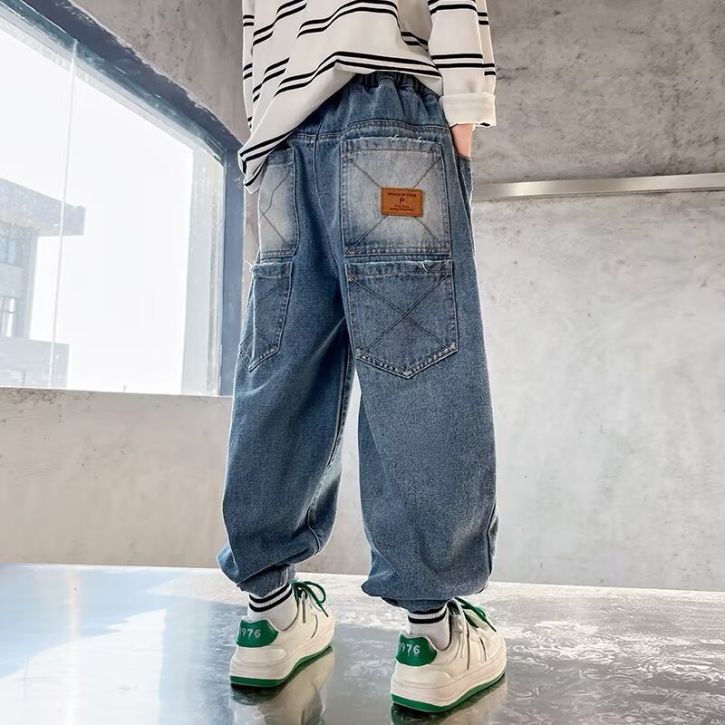 童装潮牌牛仔裤男童春秋季休闲宽松高街裤子潮儿童字母贴标裤