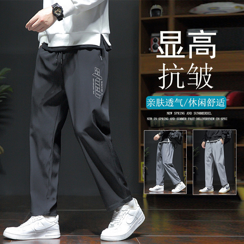 冰丝裤子男士夏休闲裤男速干宽松直筒薄款运动裤黑色锥形休闲长裤