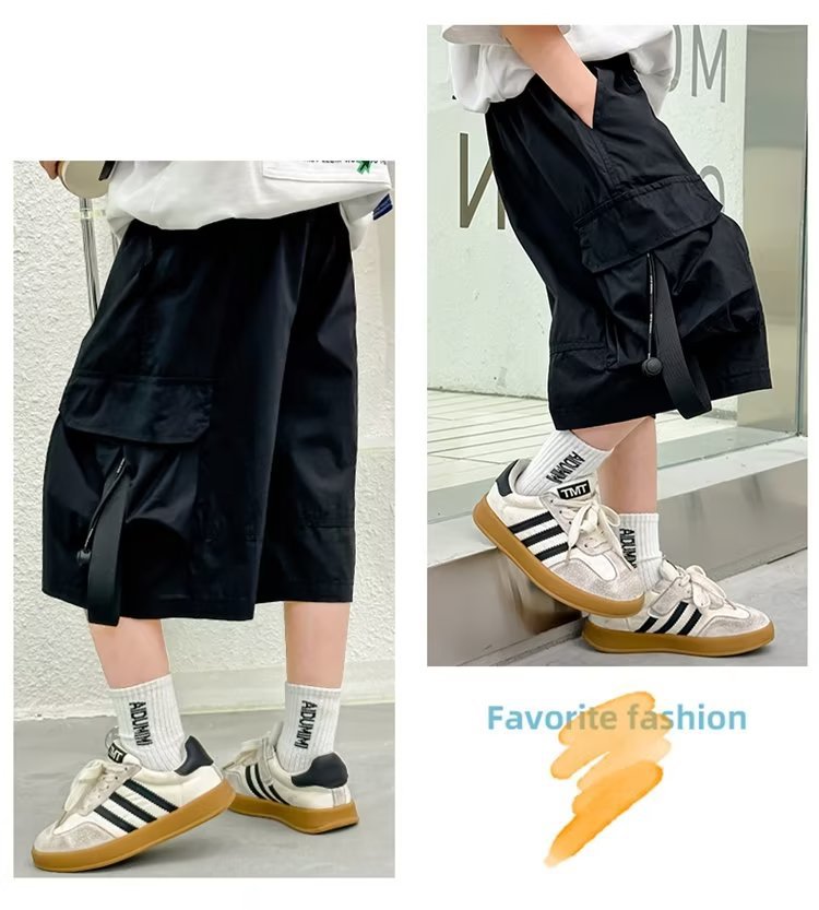 儿童装裤子男童炸街工装短裤夏季休闲五分裤男孩宽松日系中裤跨境