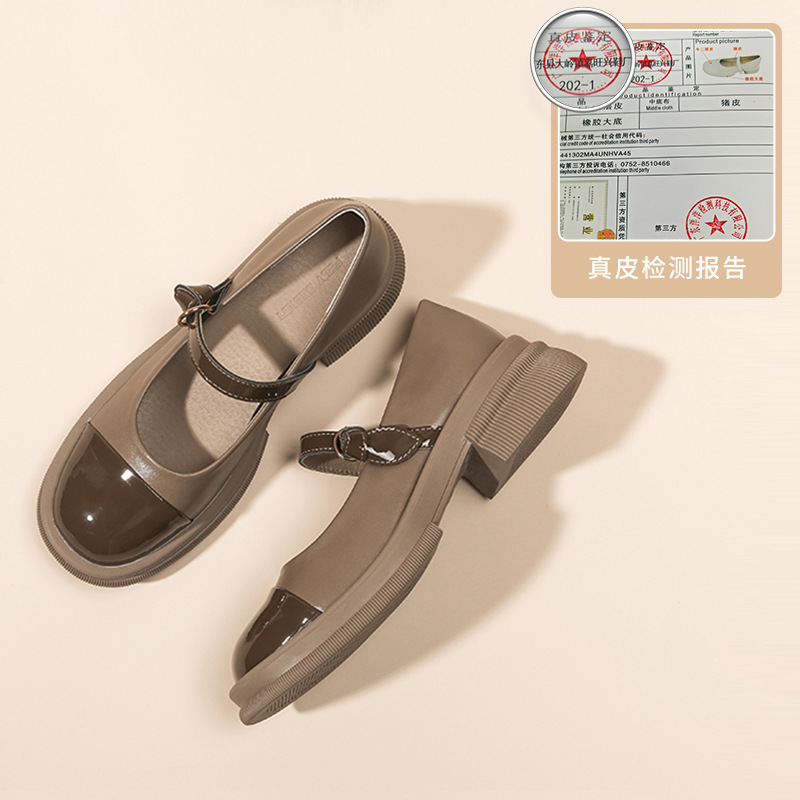 秋季玛丽珍鞋女鞋真皮复古撞色拼接厚底乐福鞋百搭小皮鞋软皮单鞋