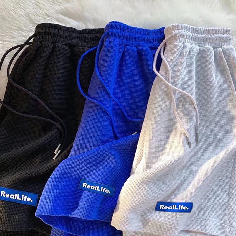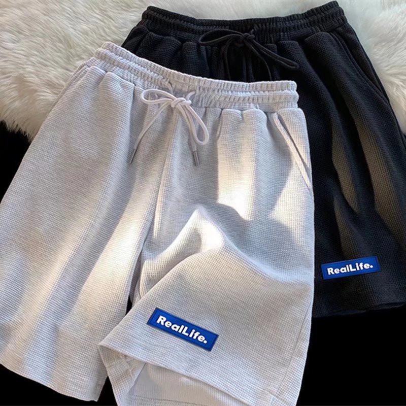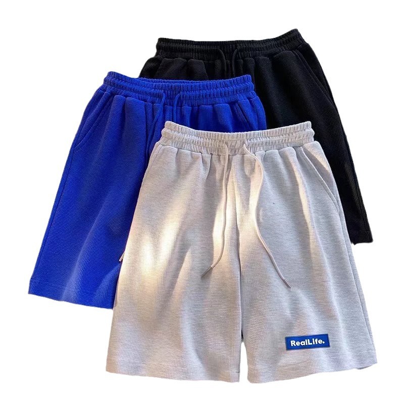 夏季华夫格休闲短裤男童纯色简约撞色拼接宽松直筒垂感五分运动裤