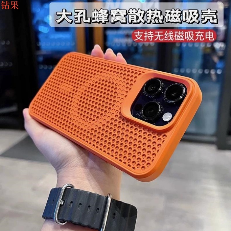 简约蜂窝网状适用苹果15手机壳磁吸iPhone13透气散热14promax硬壳