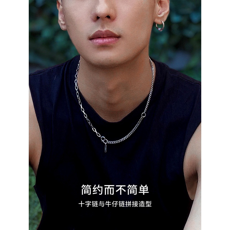 项链男ins小众高级感古巴链男生拼简约接链条送男友百搭潮牌钛钢