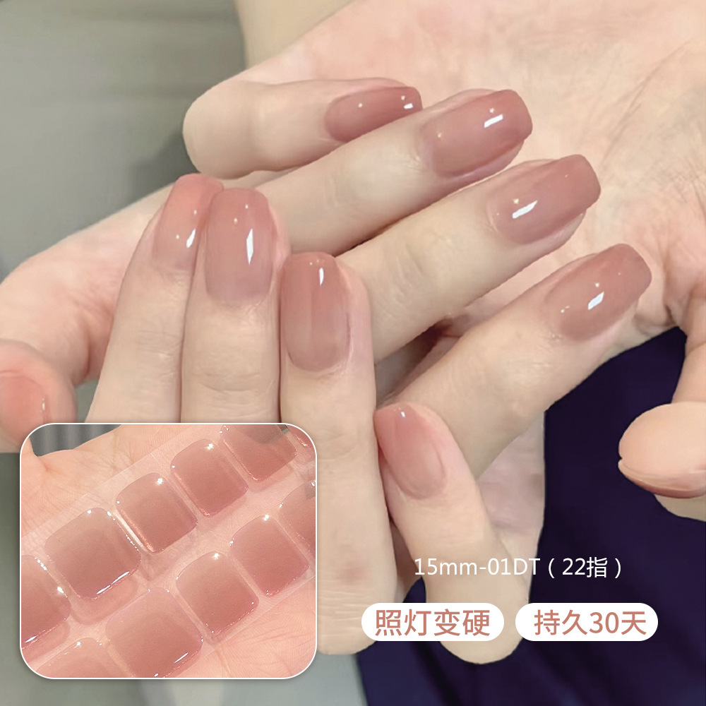 【15mm短甲型】01DT照灯变硬半固化uv凝胶美甲贴纸成品指甲