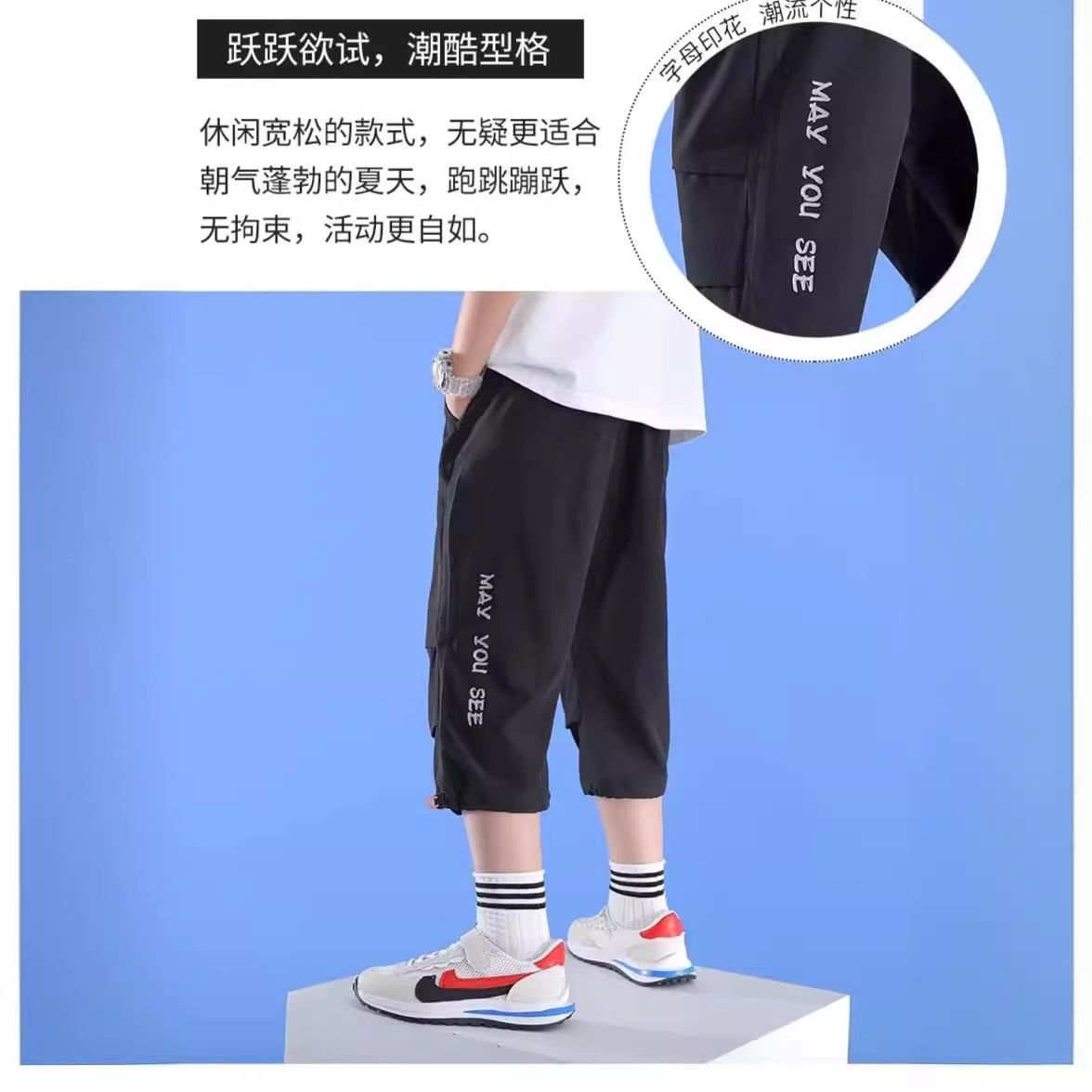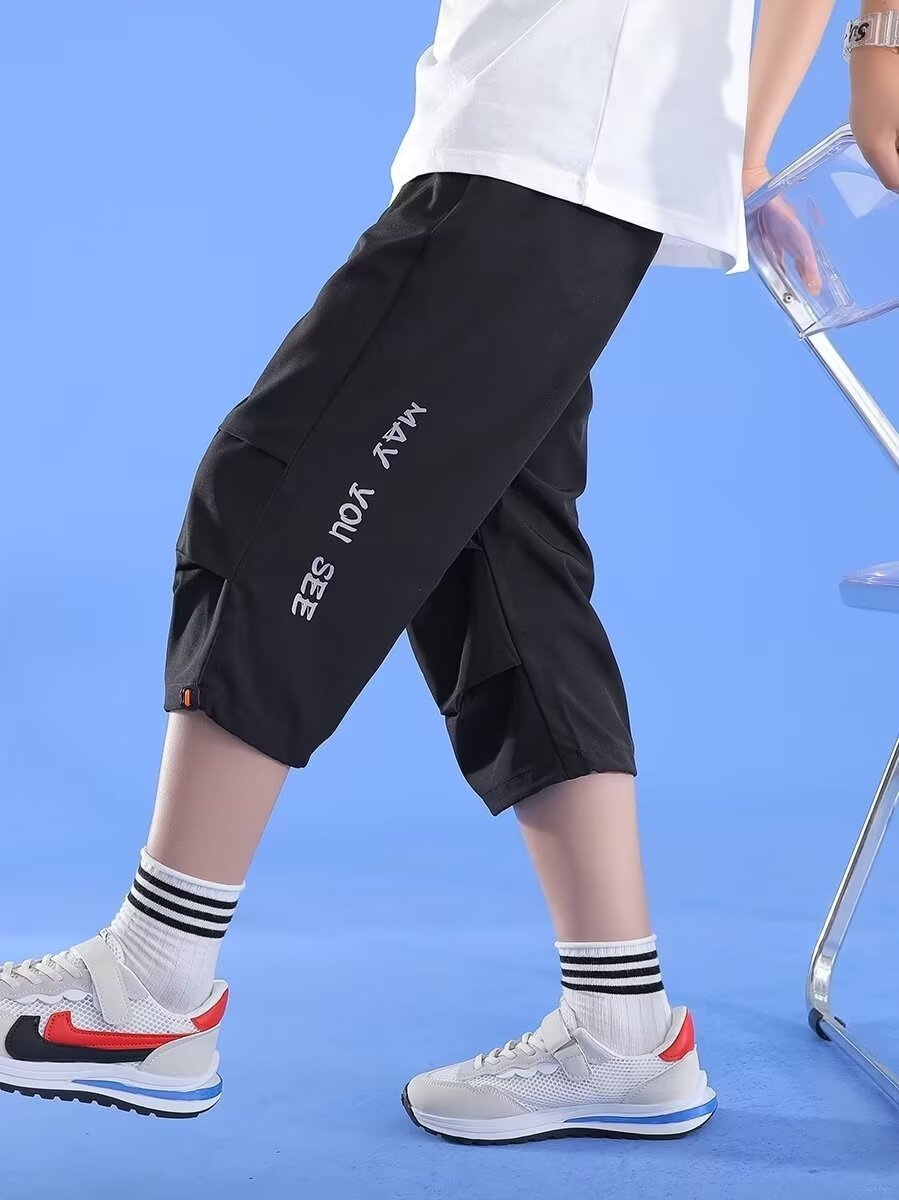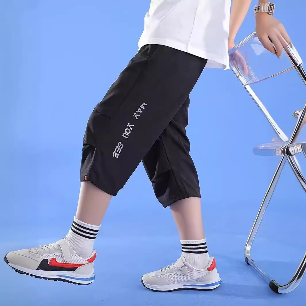 男童七分裤冰丝夏季短裤儿童速干裤子运动短裤中大童夏款童装外贸