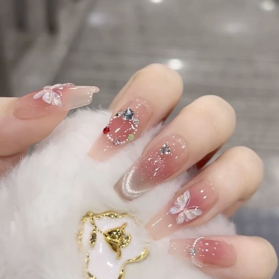 纯手工光疗穿戴甲朝花夕拾批发成品重复使用美甲贴片可拆卸