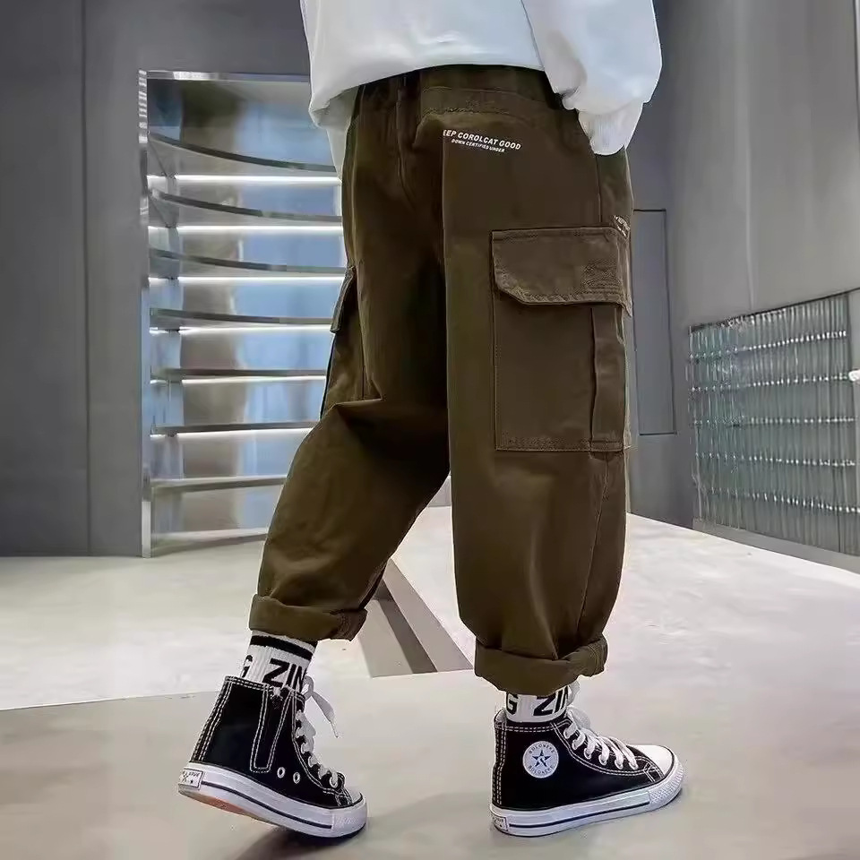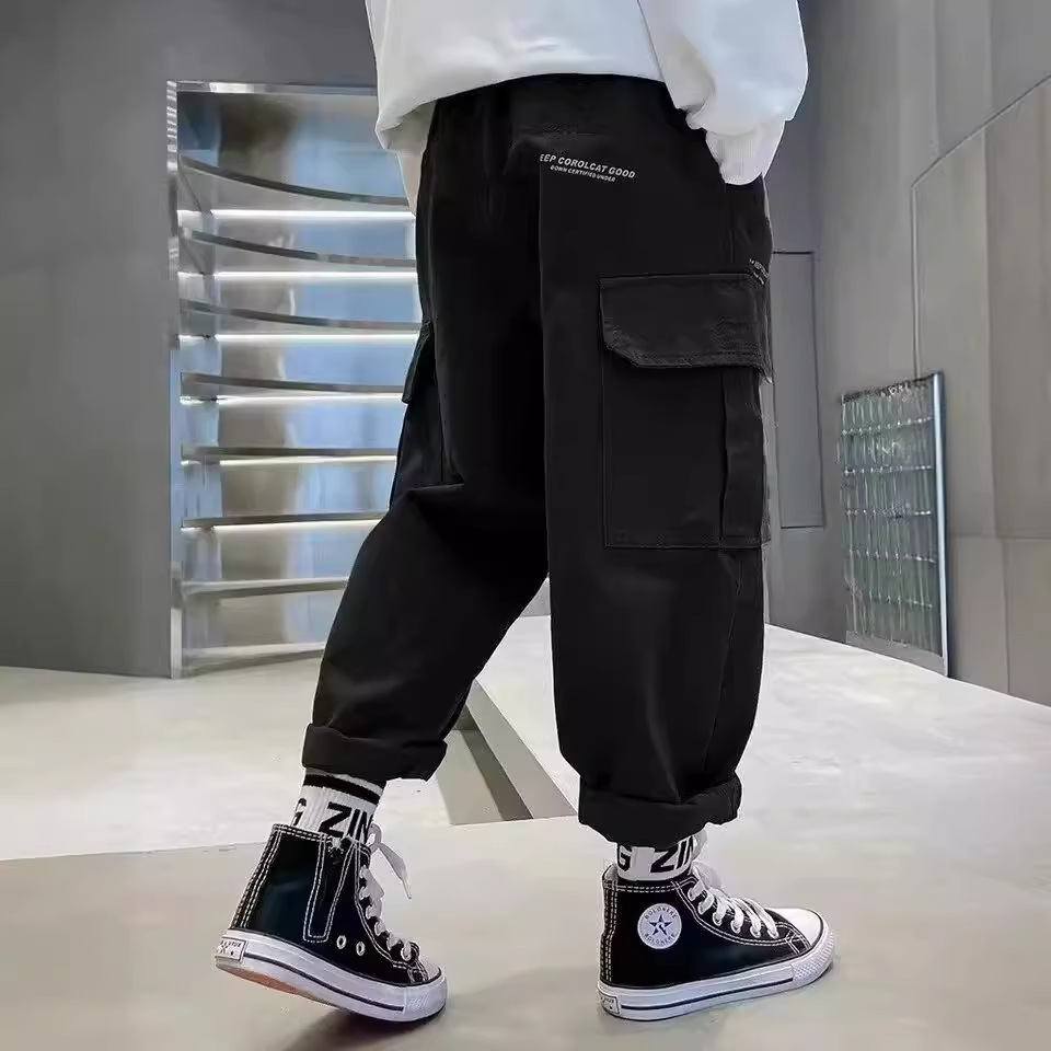 童装纯棉工装裤男童韩版个性高街春秋季新款ins长裤中大童休闲裤