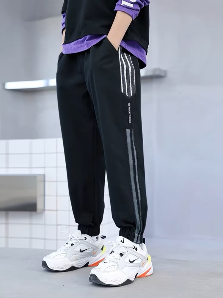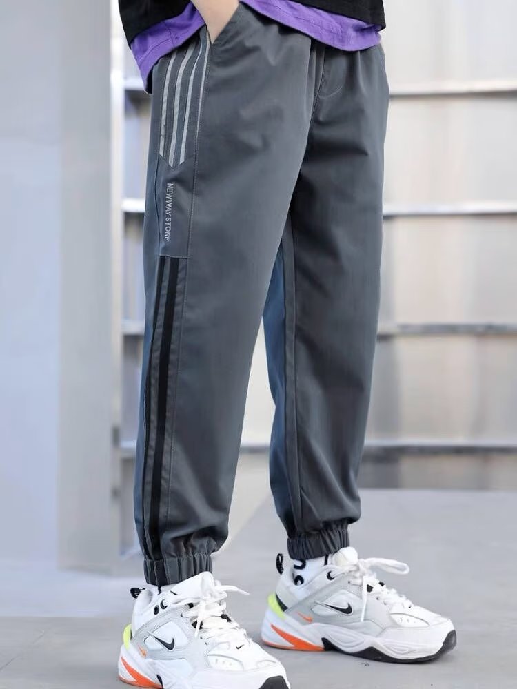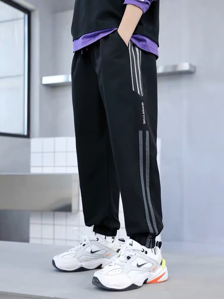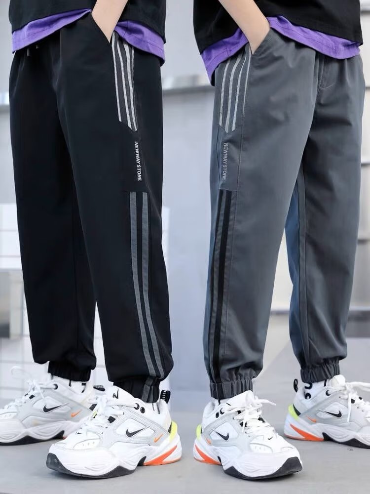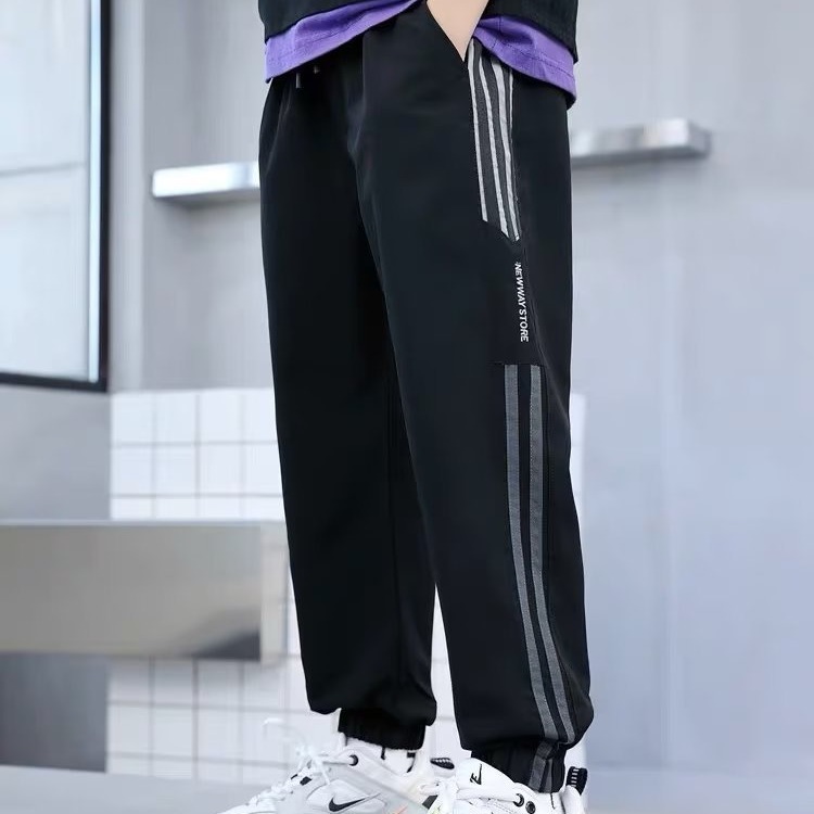 男童运动裤夏季新款儿童防蚊裤学生休闲条纹束脚裤夏季速干潮
