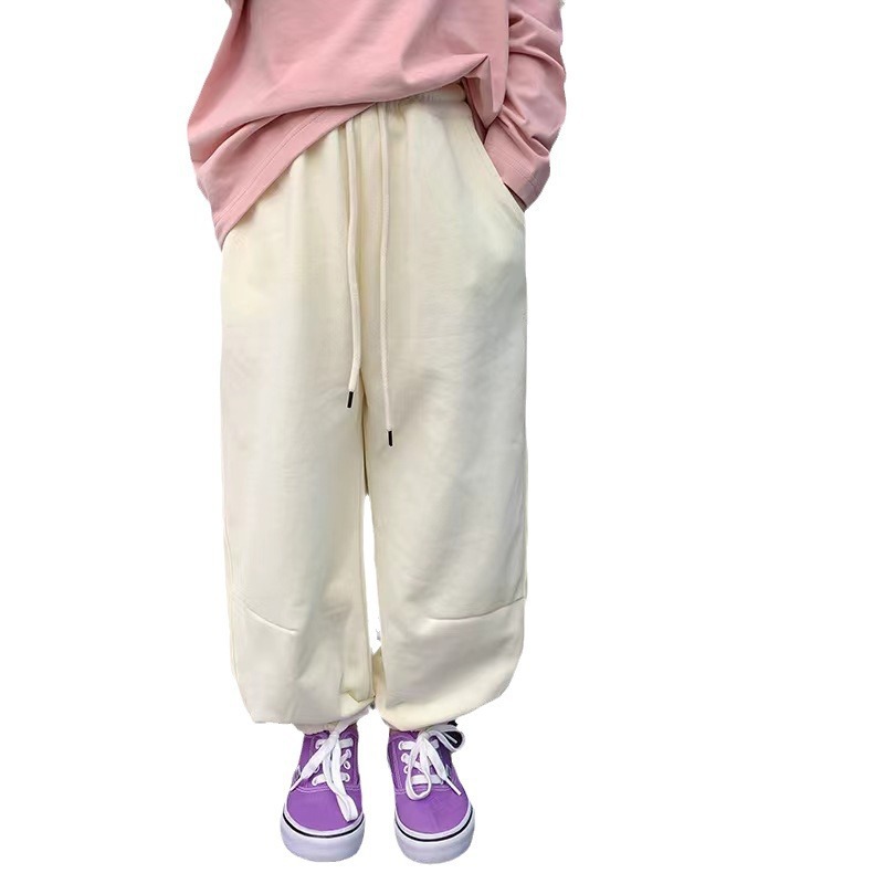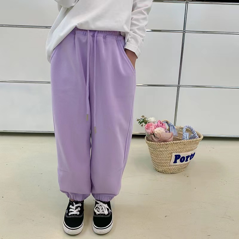 跨境童装卫裤新款男女童韩版纯色系带运动裤中小童休闲束脚裤