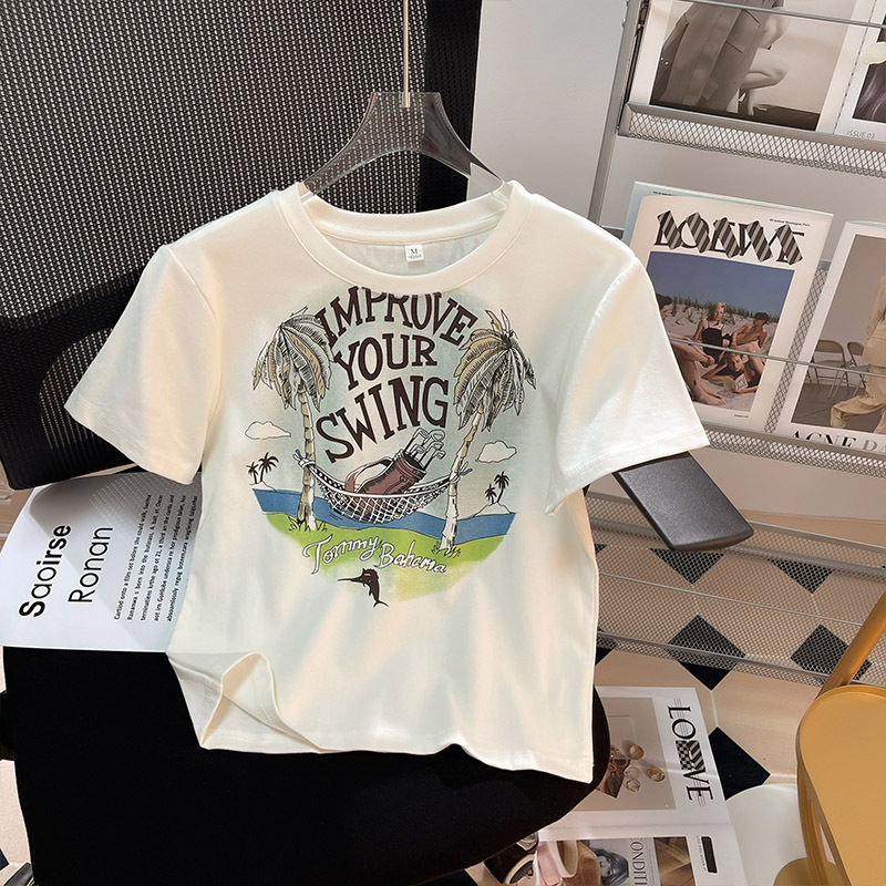 纯棉新款设计感t恤女短袖修身正肩显瘦短款小个子上衣夏季