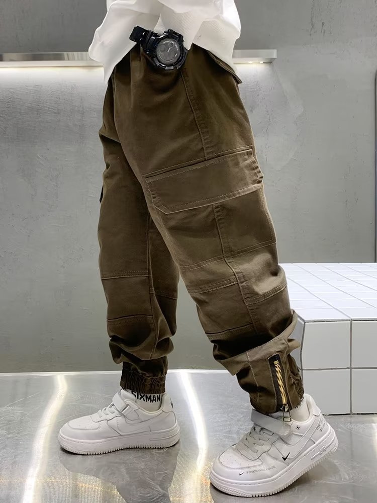童装纯棉工装裤新款男童宽松束脚休闲裤春秋款炸街运动裤跨境