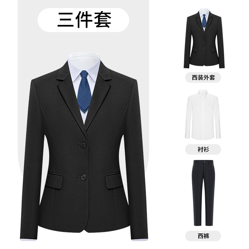 - 单扣藏青色外套+马甲+衬衫+西裤