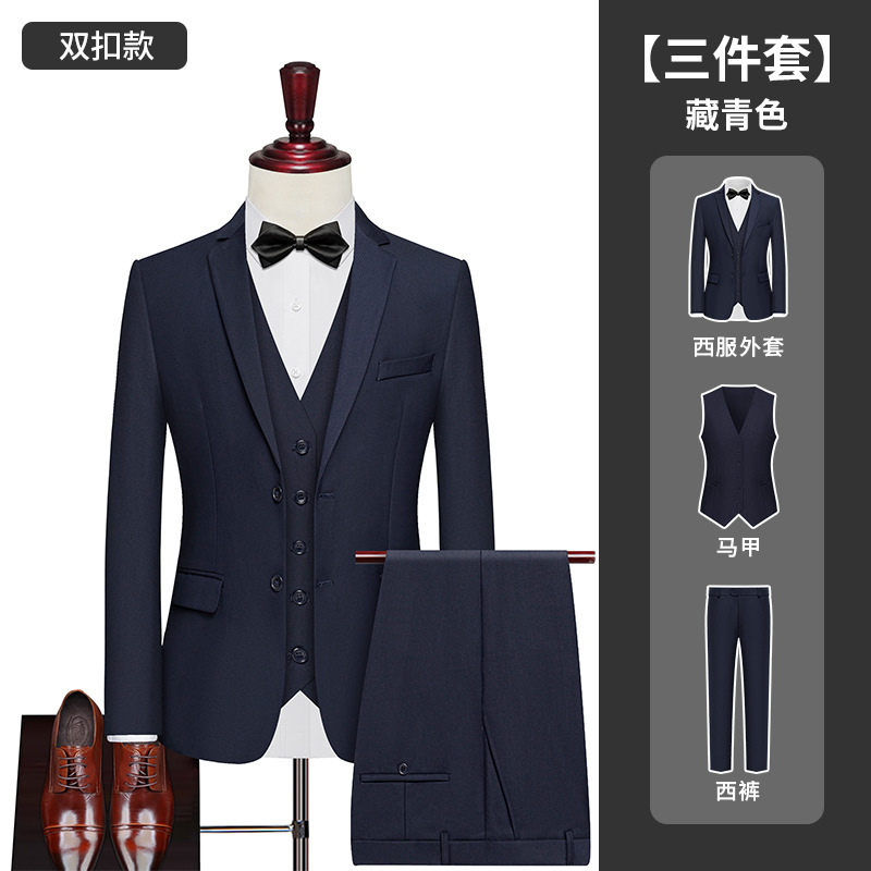 - 藏青双扣(西装+马甲+西裤+衬衫)