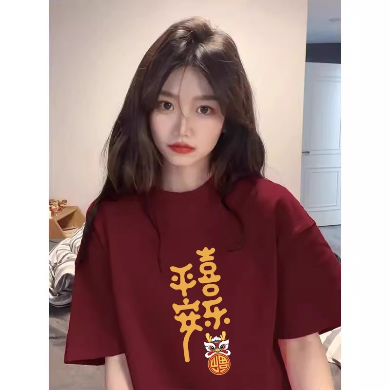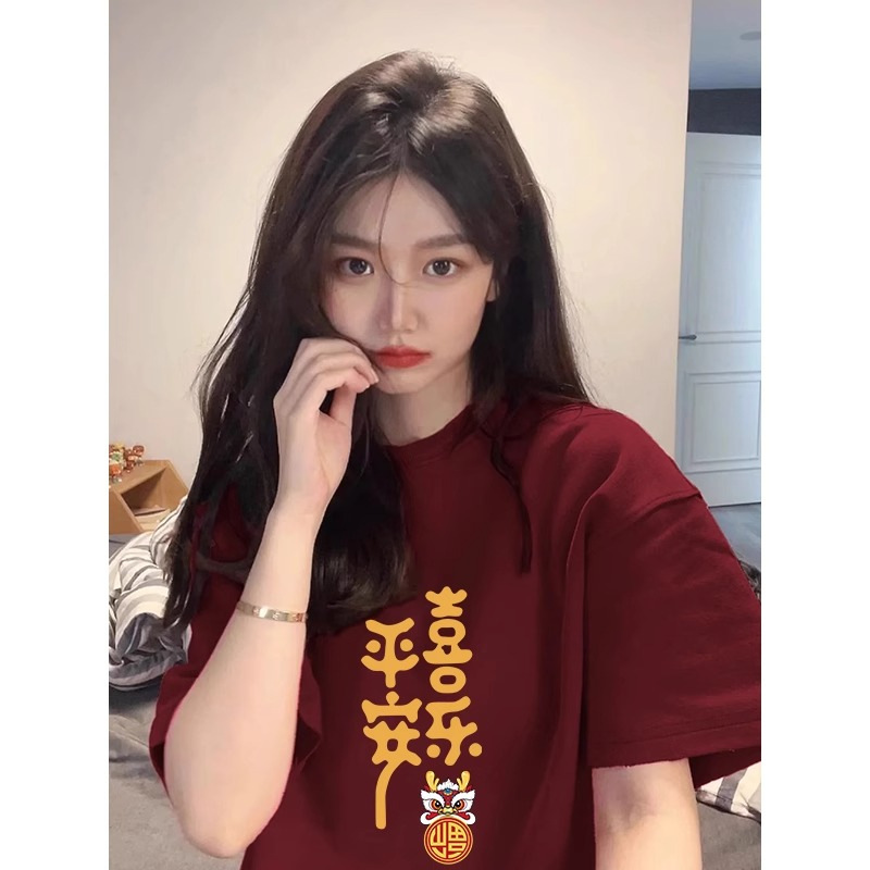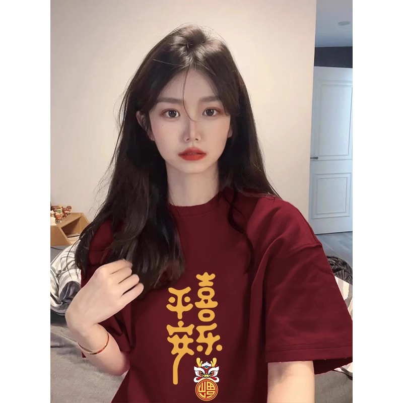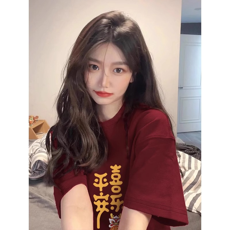 纯棉短袖T恤女夏季新款宽松显瘦红色圆领设计感正肩体恤上衣潮牌