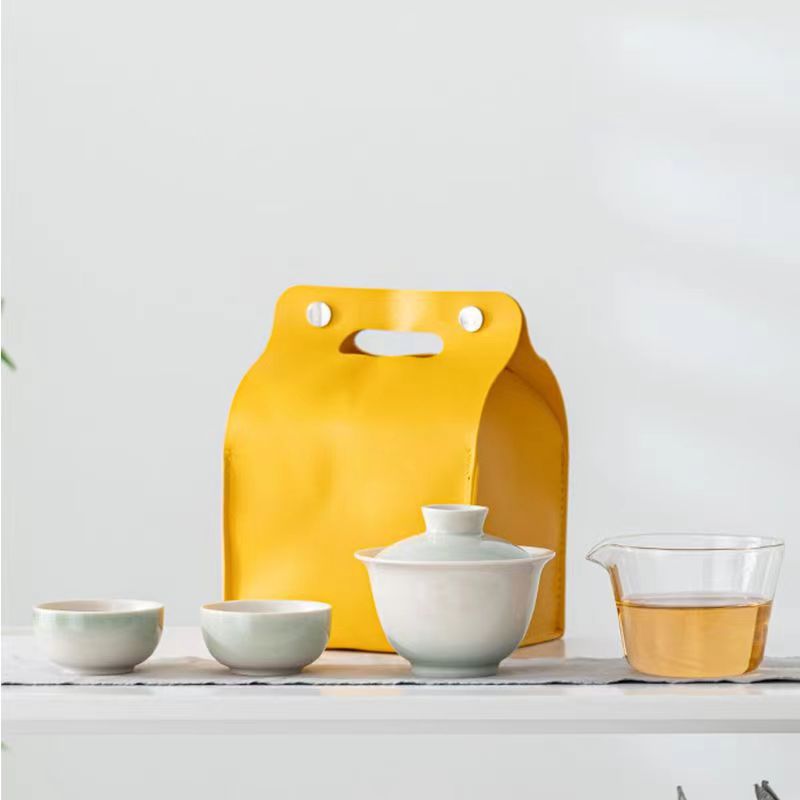 户外旅行功夫茶具套装陶瓷盖碗快客杯一壶二杯便携包露营