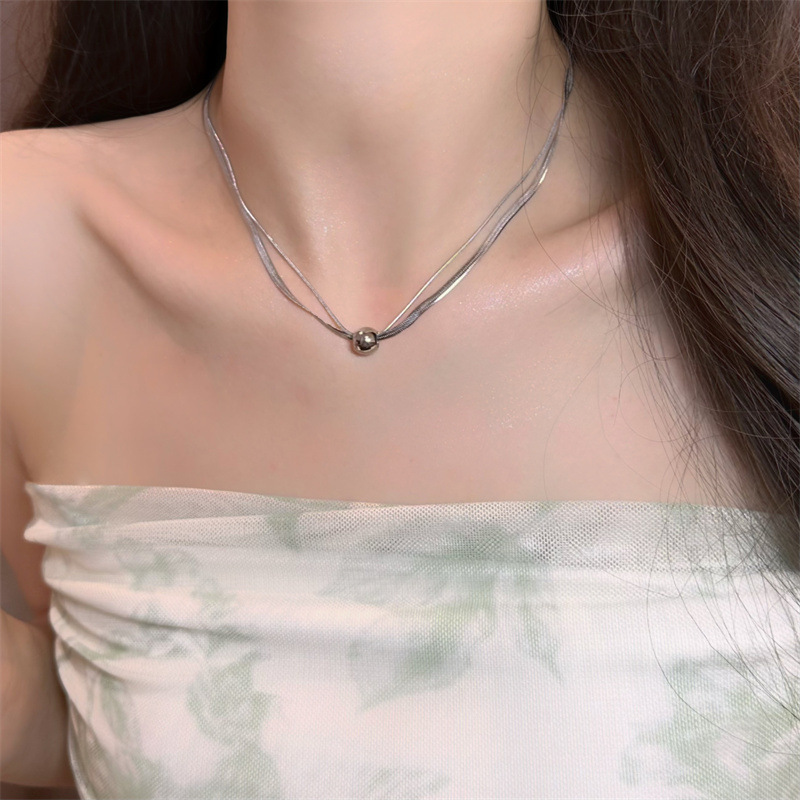 双层简约气质钛钢不掉色串珠项链女百搭小众高级感短款毛衣链颈链