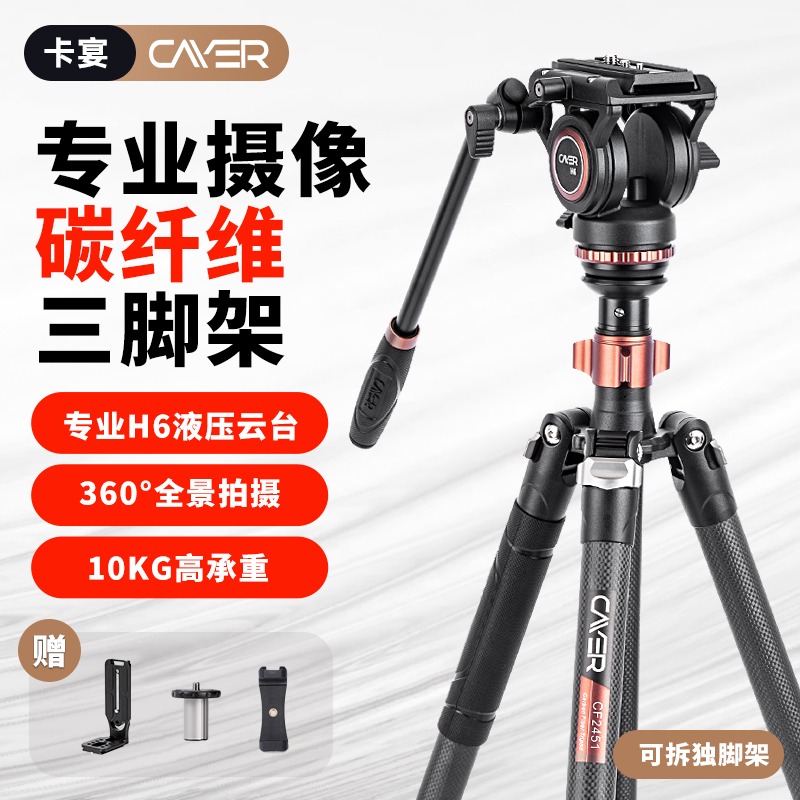 卡宴2450相机三脚架专业摄影摄像碳纤维支架单反微单直播户外旅行拍摄三角架液压阻尼云台便携式可变独脚架