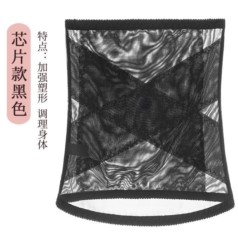 产后收腹带透气高腰防卷恢复减肚子网纱塑身美体腰带女腰封夹黑色