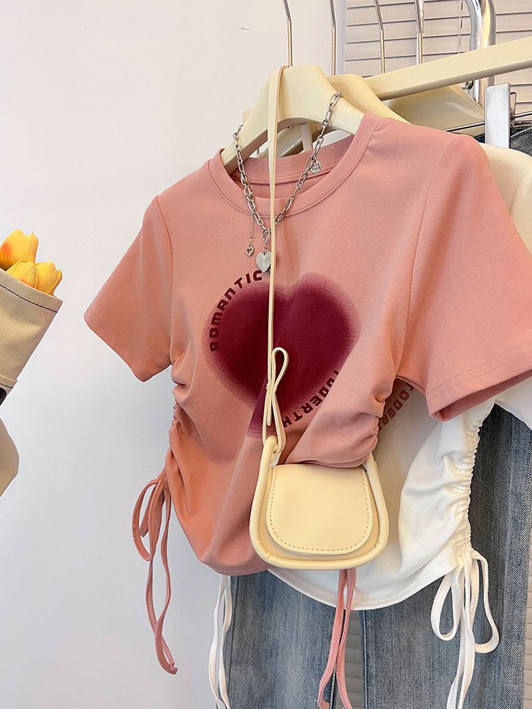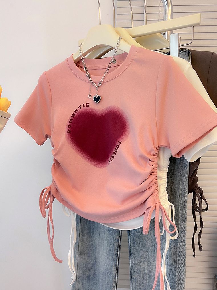 纯棉正肩短袖t恤女夏季新款修身体恤收腰显瘦小个子短款上衣