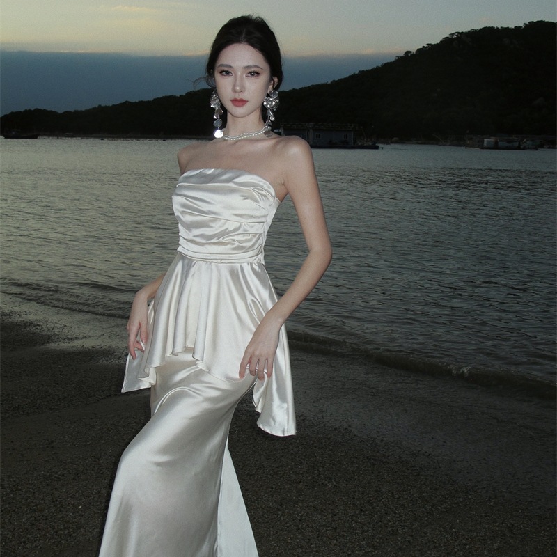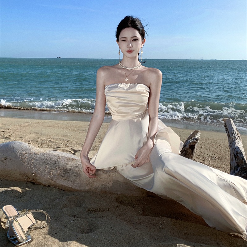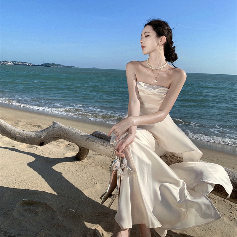 三亚旅行穿搭衣服一字领抹胸连衣裙显瘦超仙女裙海边度假沙滩裙子