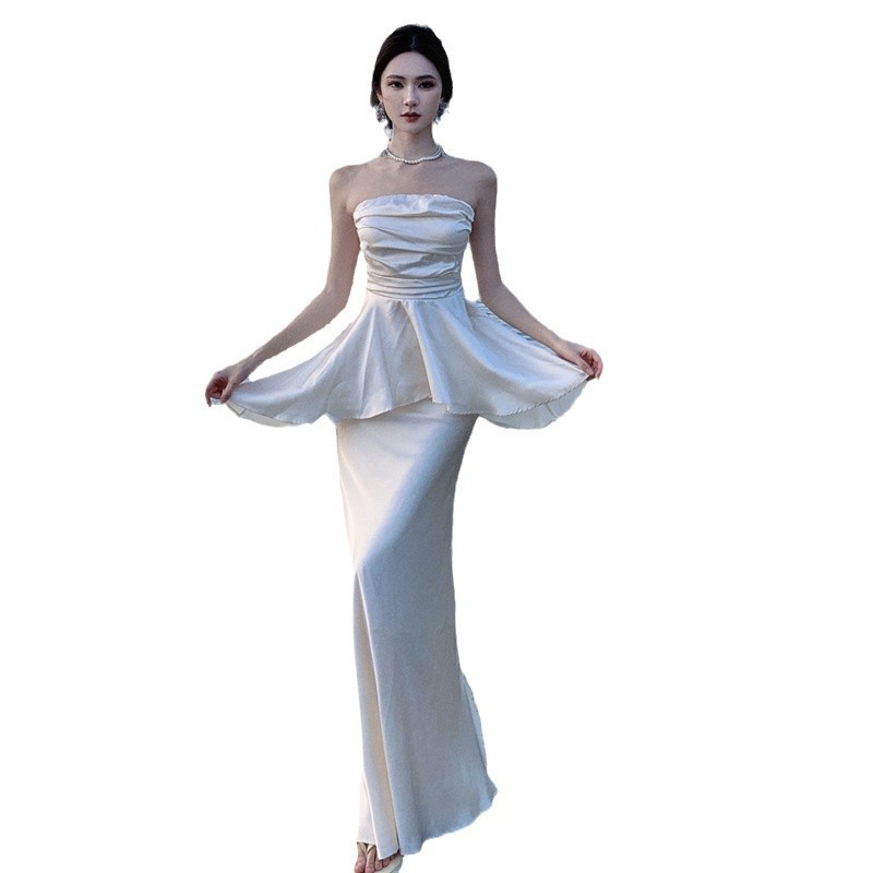 法式时尚套装女高级感抹胸背心夏季裹胸褶皱上衣+收腰弹力半身裙