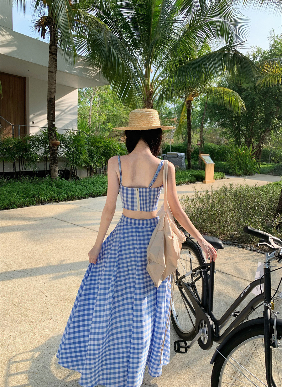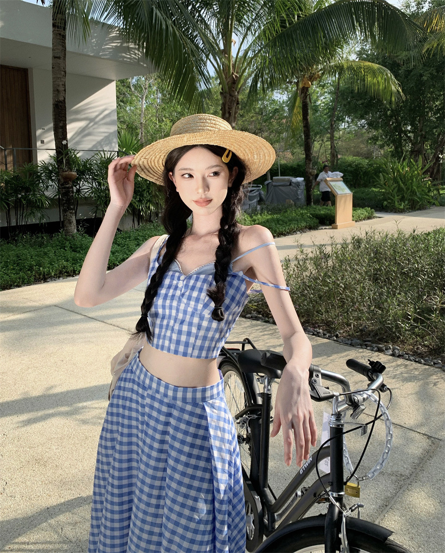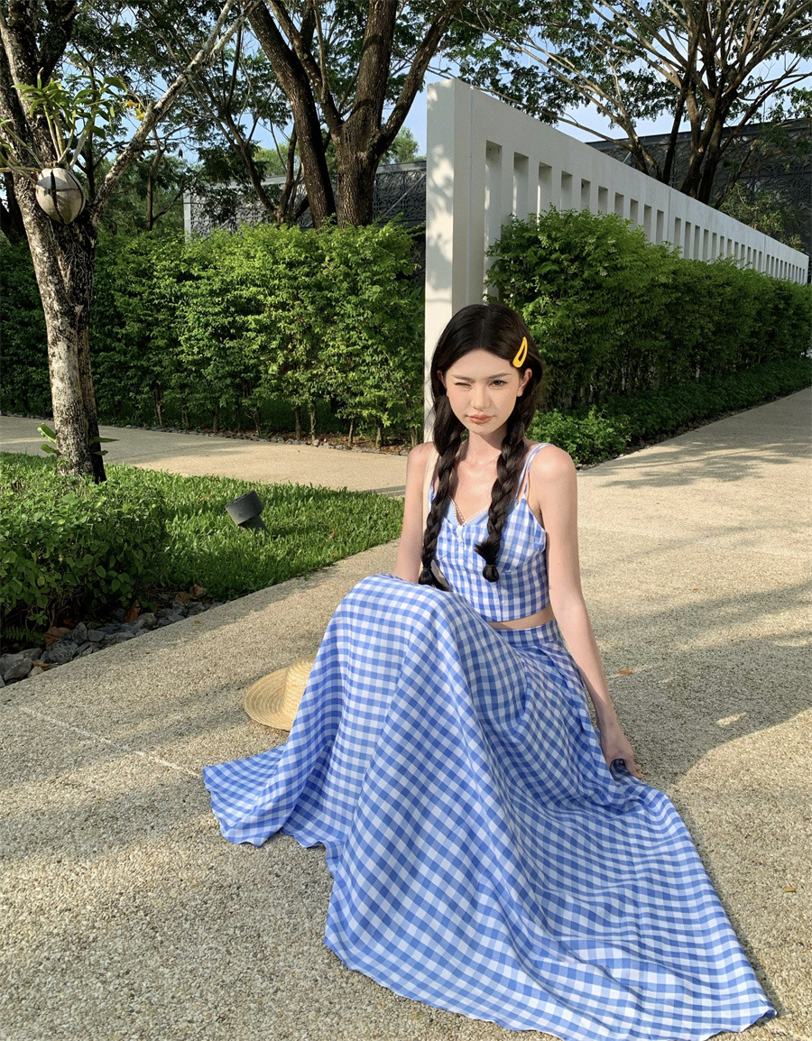 吊带背心+桃乐丝格子裙两件套高级感减龄洋气时尚多巴胺穿搭套装