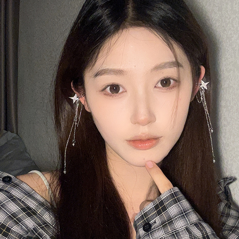气质高级感微镶锆石四芒星耳夹小众轻奢长款流苏耳骨夹无耳洞耳饰