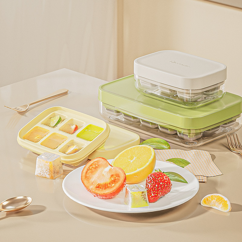 按压冰格冰块模具家用食品级硅胶带盖冰箱制冰神器迷你6格冰块盒