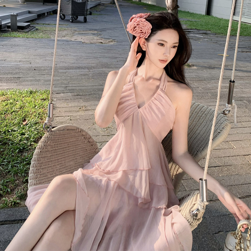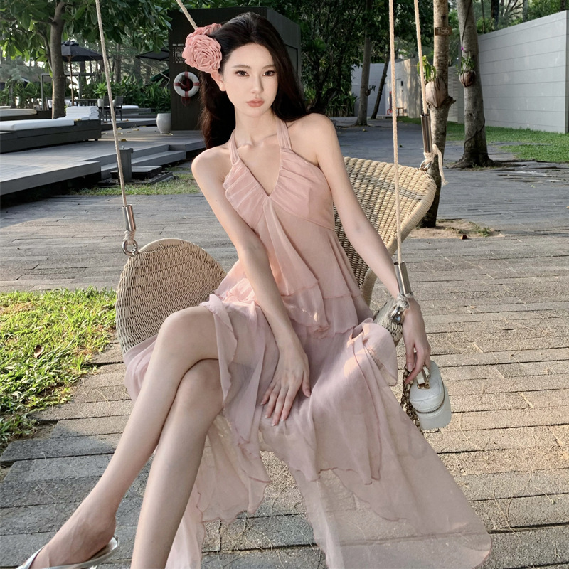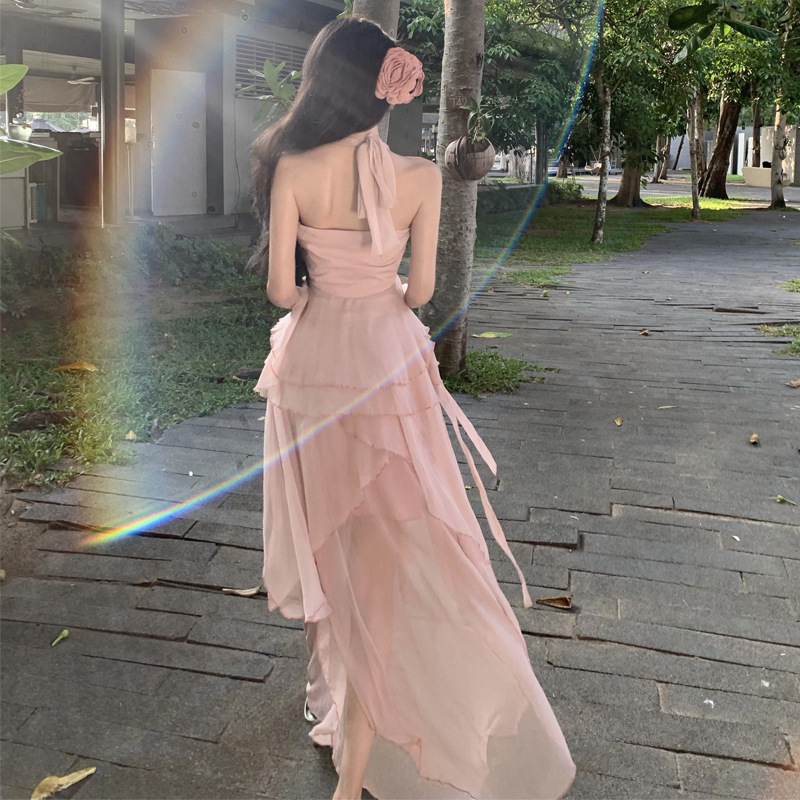 实拍樱花雨氛围感仙气不规则飘逸海边度假套装裙两件套旅游海岛裙