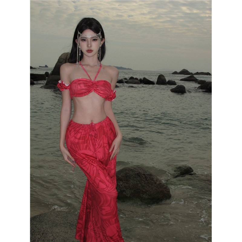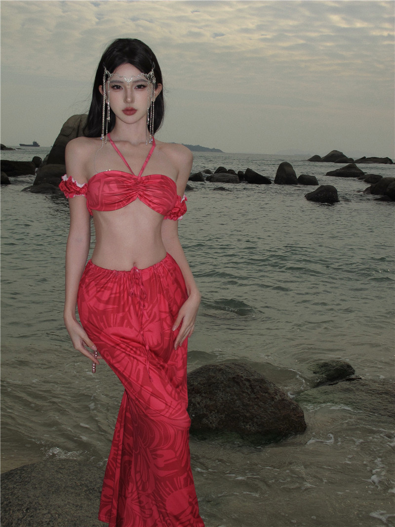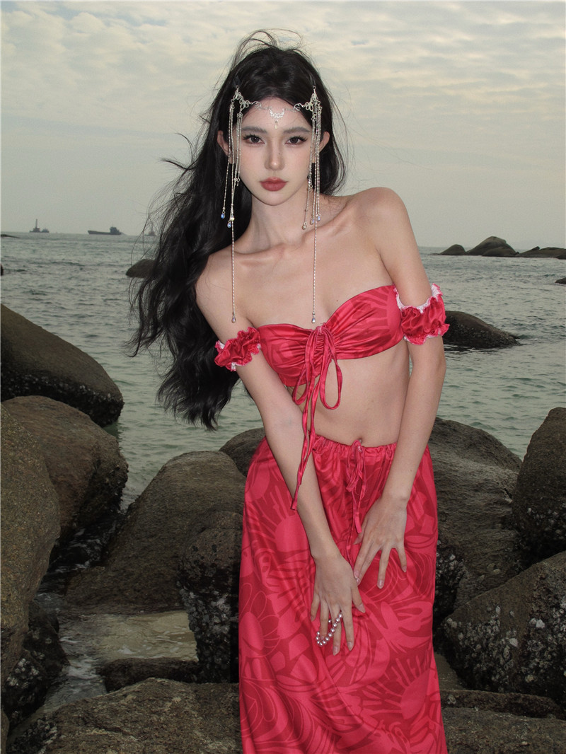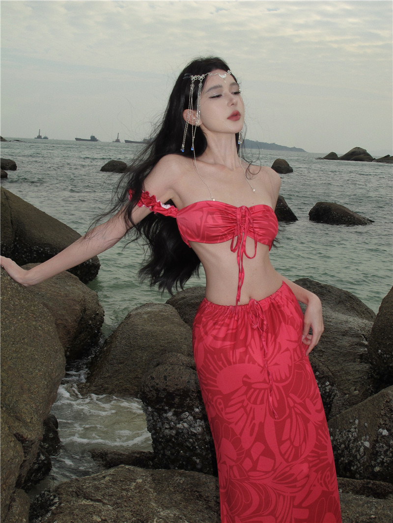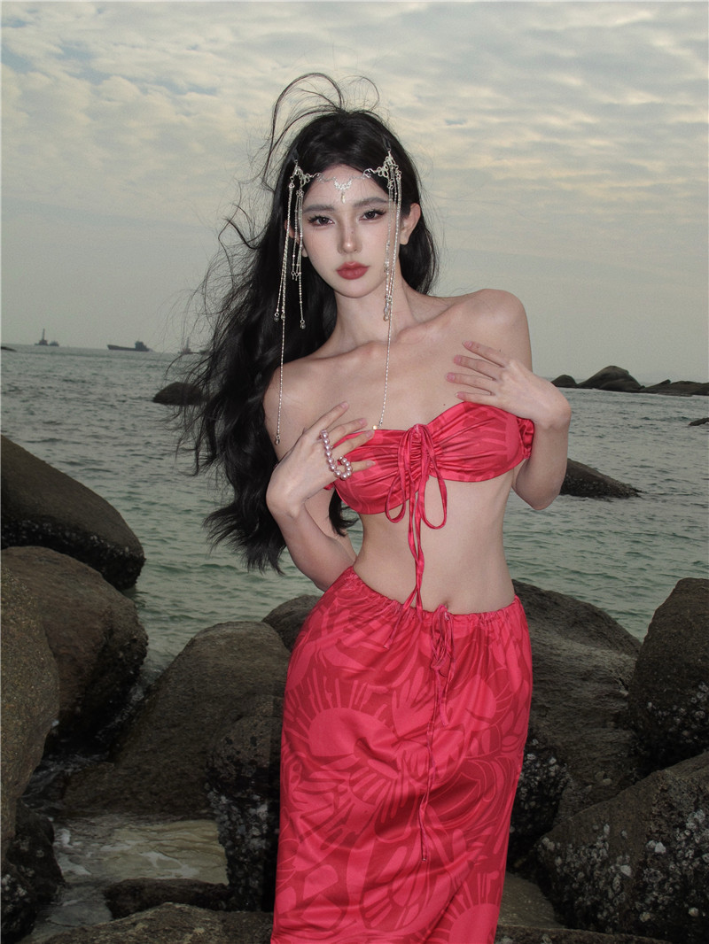 夏新款性感辣妹度假抹胸上衣+纯欲半身裙两件套晚宴聚会party套装