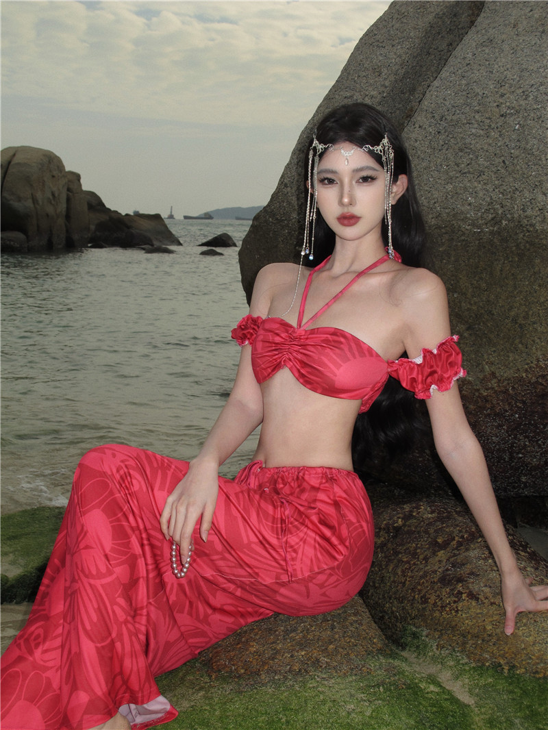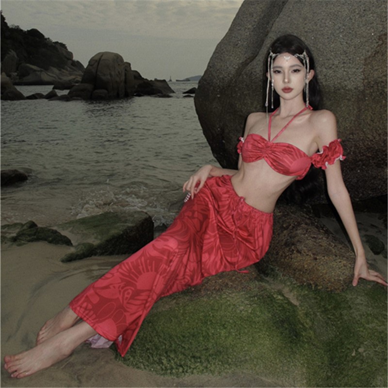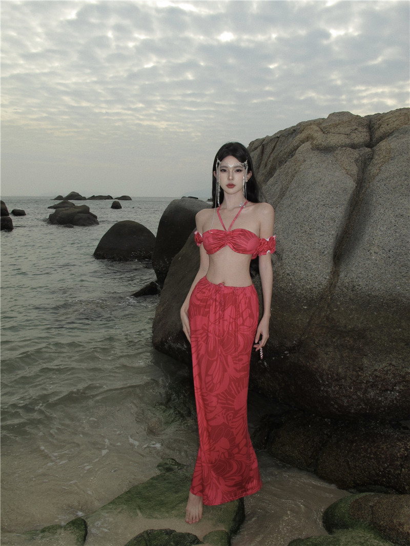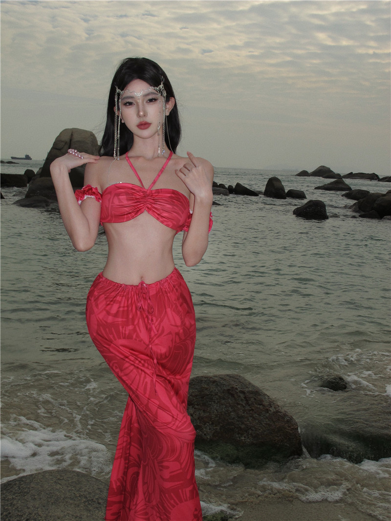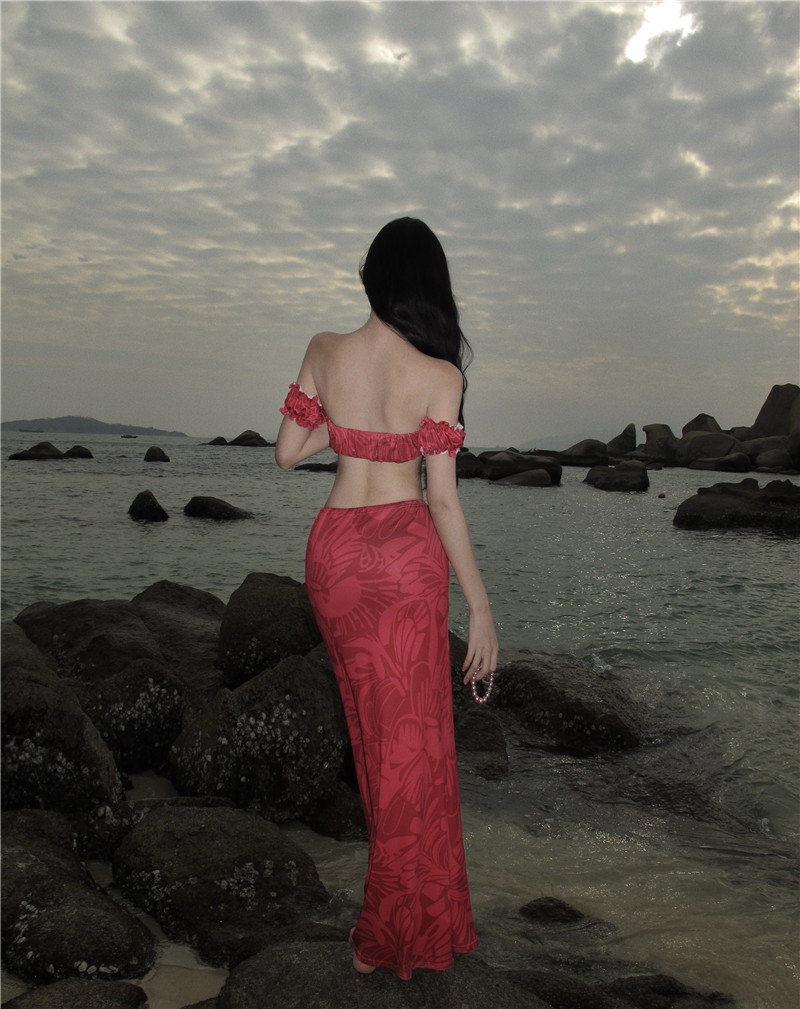 夏新款性感辣妹度假抹胸上衣+纯欲半身裙两件套晚宴聚会party套装