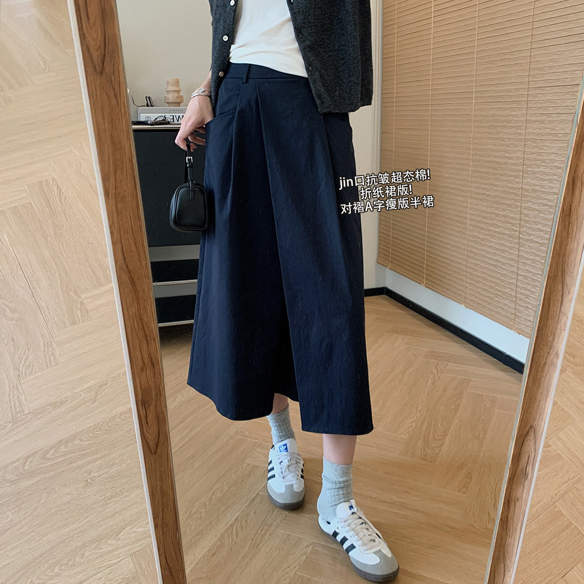 大叮自制折纸裙!jin口抗皱超态棉不对称对褶褶裥A字裙高腰半身裙
