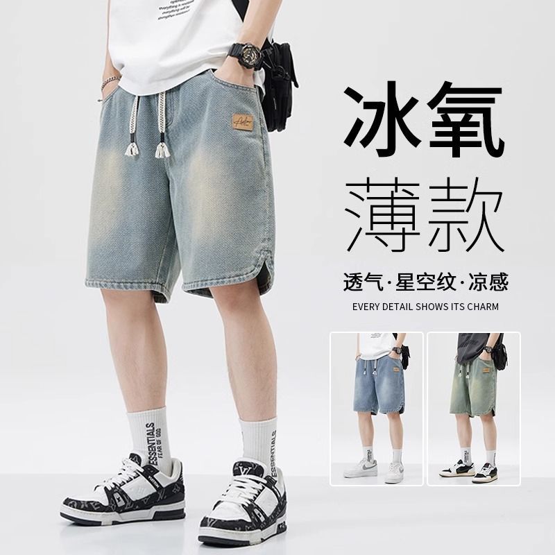 夏季薄款星空纹牛仔短裤男士直筒宽松美式潮牌休闲五分中