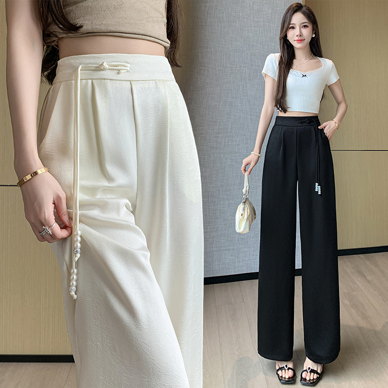 夏季新款新中式国风缎面提花冰丝裤西装直筒裤薄款阔腿裤长裤