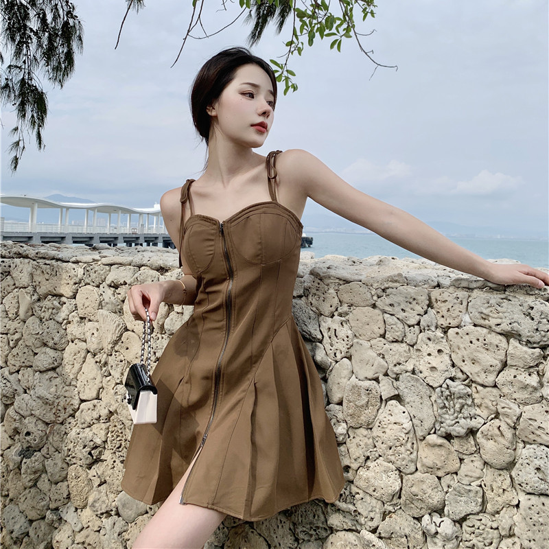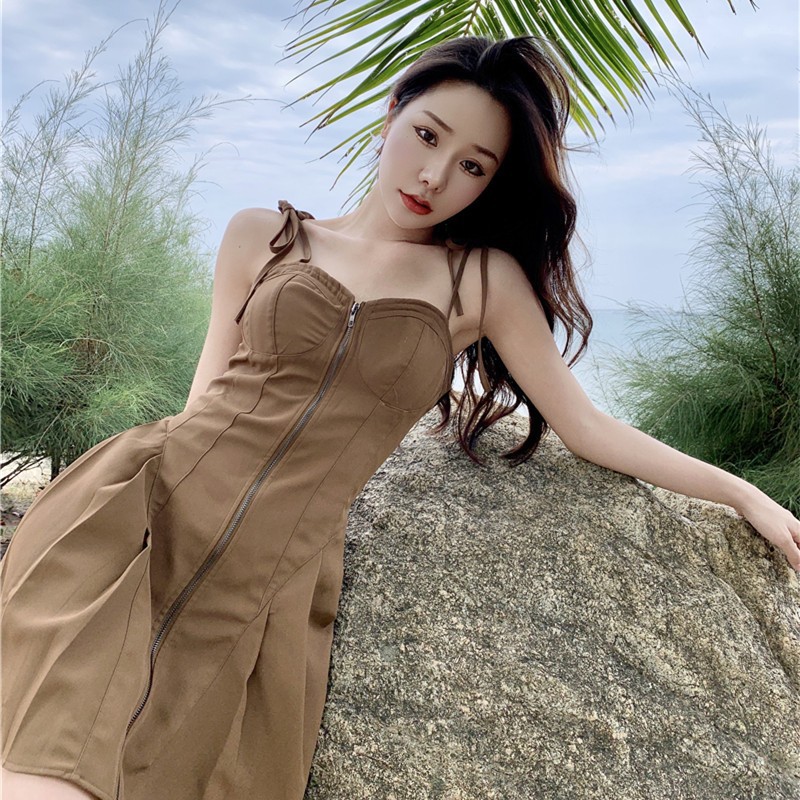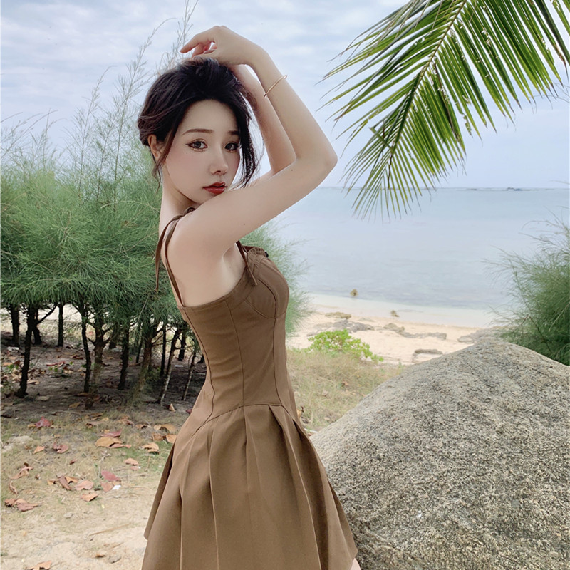 实拍夏季新款性感吊带连衣裙夏复古小众设计显瘦a字裙子度假裙女