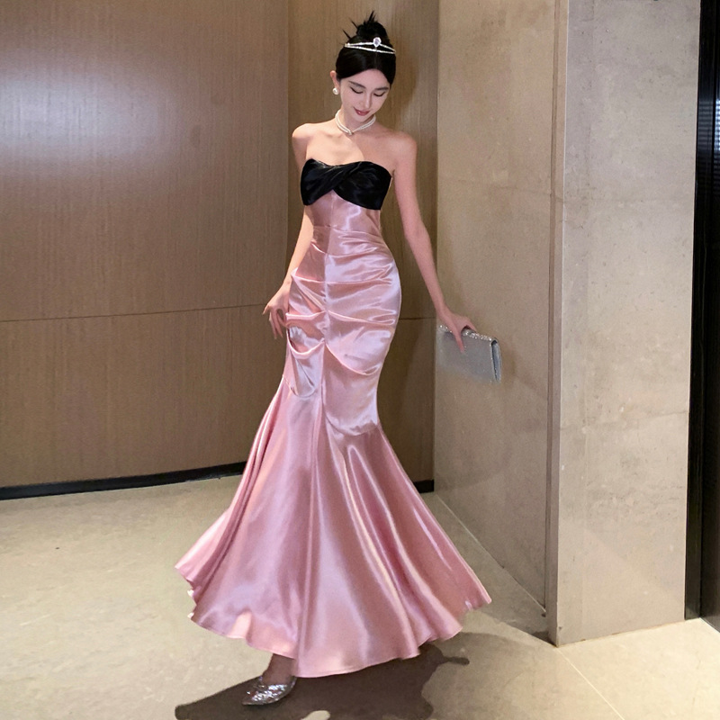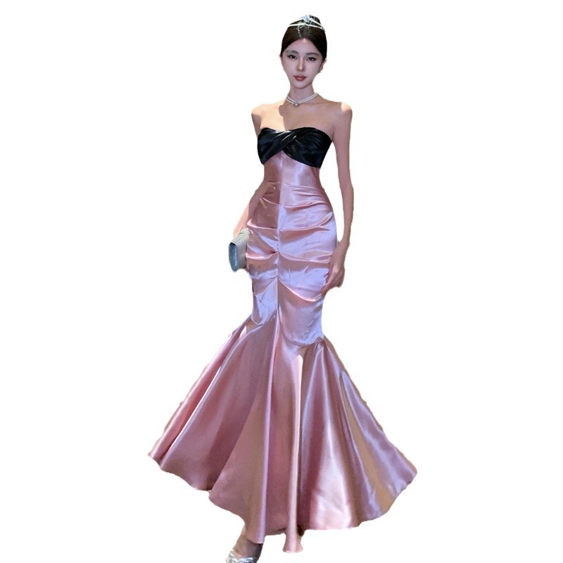 法式拼色包臀鱼尾连衣裙宴会裙婚礼晨袍敬酒服圣诞新年派对礼服裙