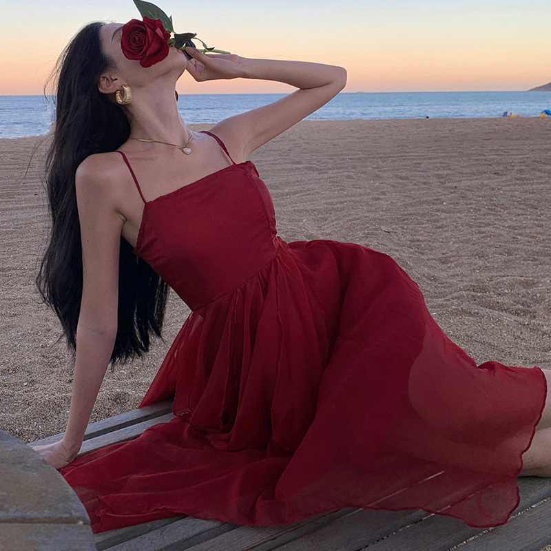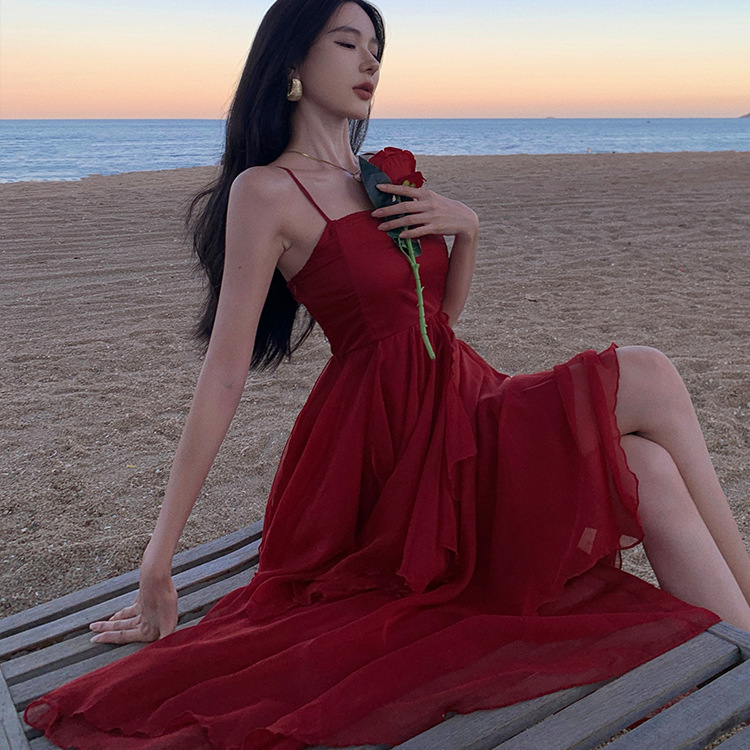出游拍照很仙的连衣裙女巴厘岛三亚度假长裙甜美飘逸不规则吊带裙